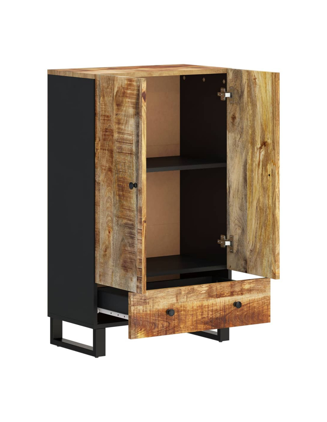 - Legno massello di mango: Questa credenza è realizzata in legno massello di mango, un legno duro con venature dense. Il legno massello di mango non solo è in grado di sopportare grandi pesi, ma è anche resistente all'usura del tempo.