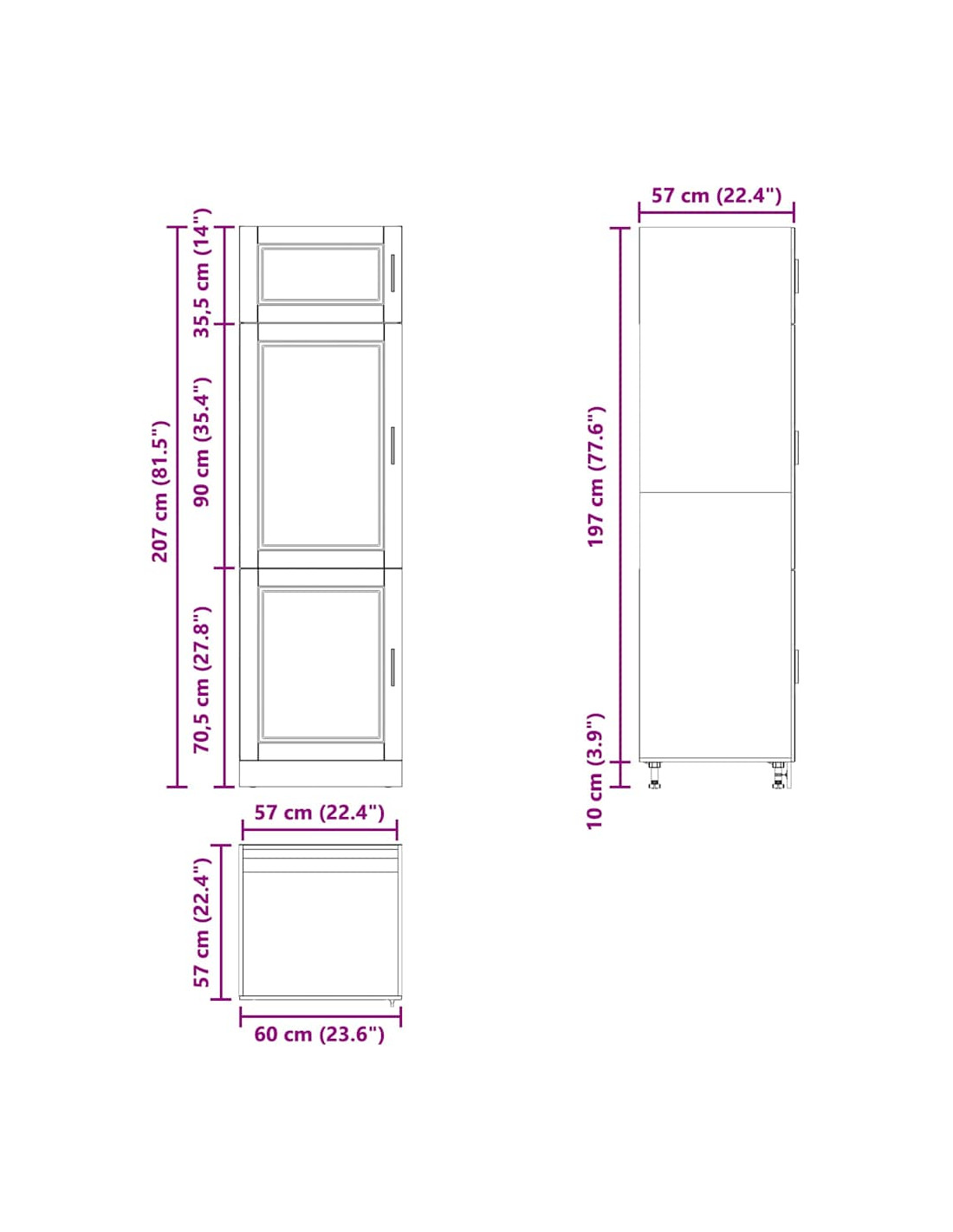 - Dimensioni complessive: 60 x 57 x 207 cm (L x P x A)