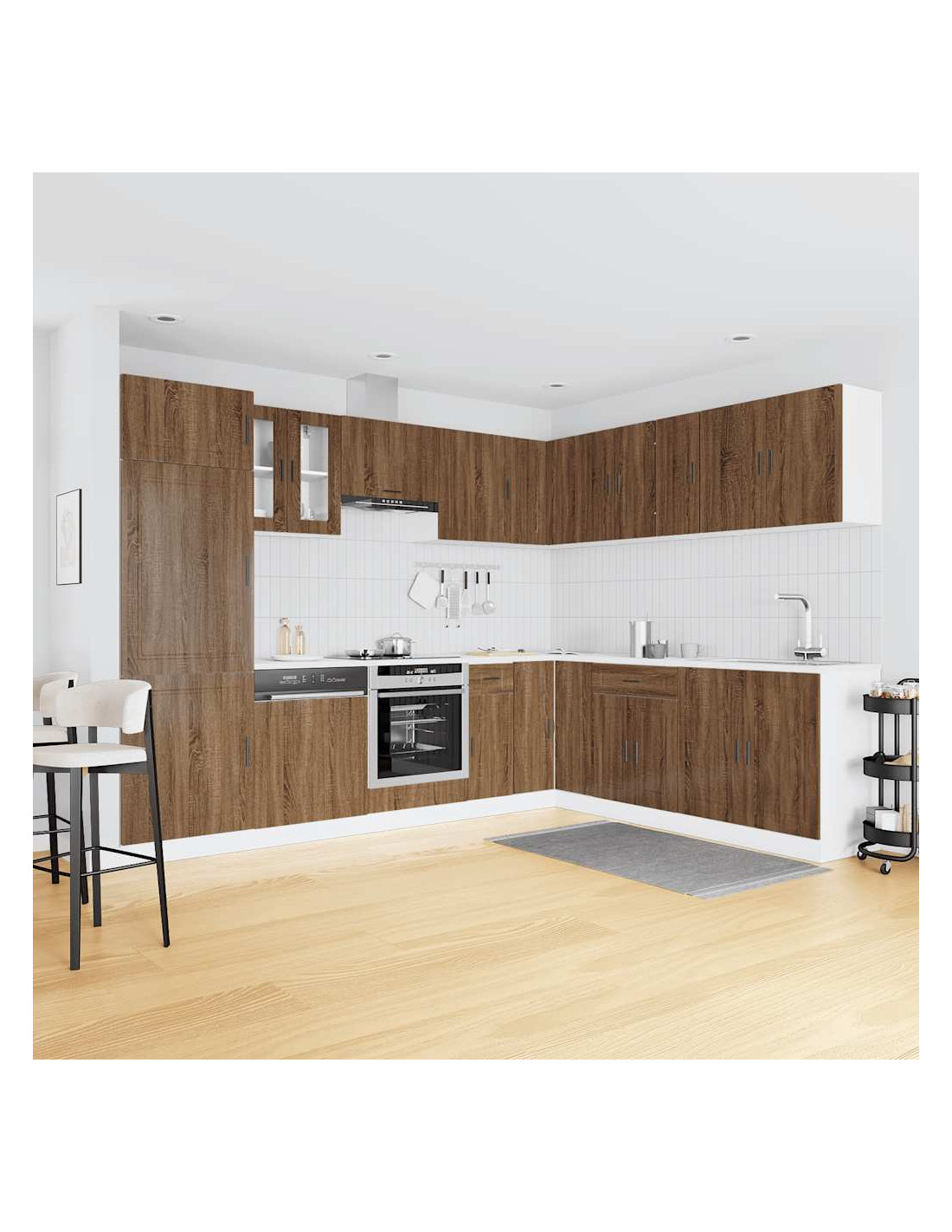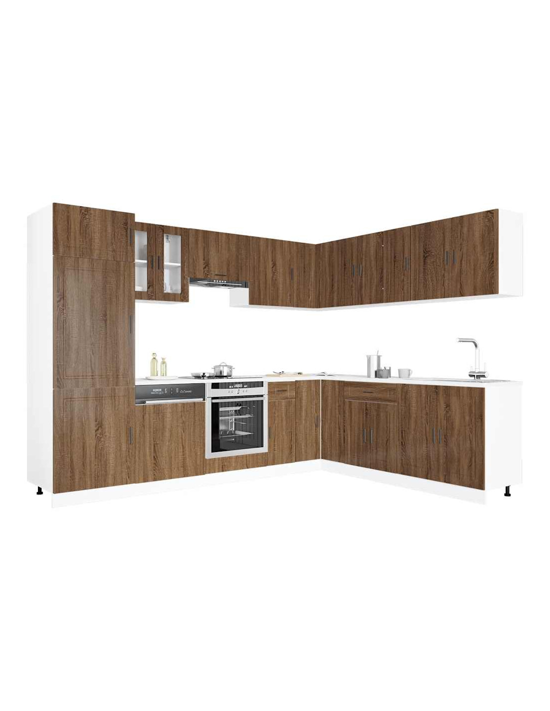 Questo set di mobili da cucina da 14 pezzi, con il suo design elegante, ottimizza lo spazio della tua cucina e offre ampio spazio per riporre i tuoi effetti personali!