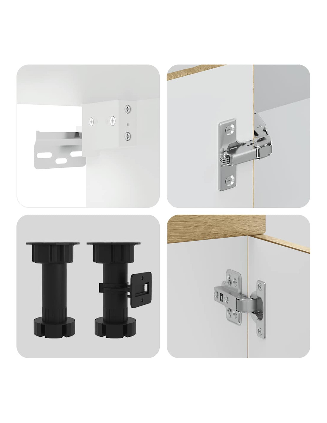 - Piedini regolabili: I mobili inferiori sono dotati di piedini regolabili che possono essere regolati in altezza per adattarsi al layout della cucina.