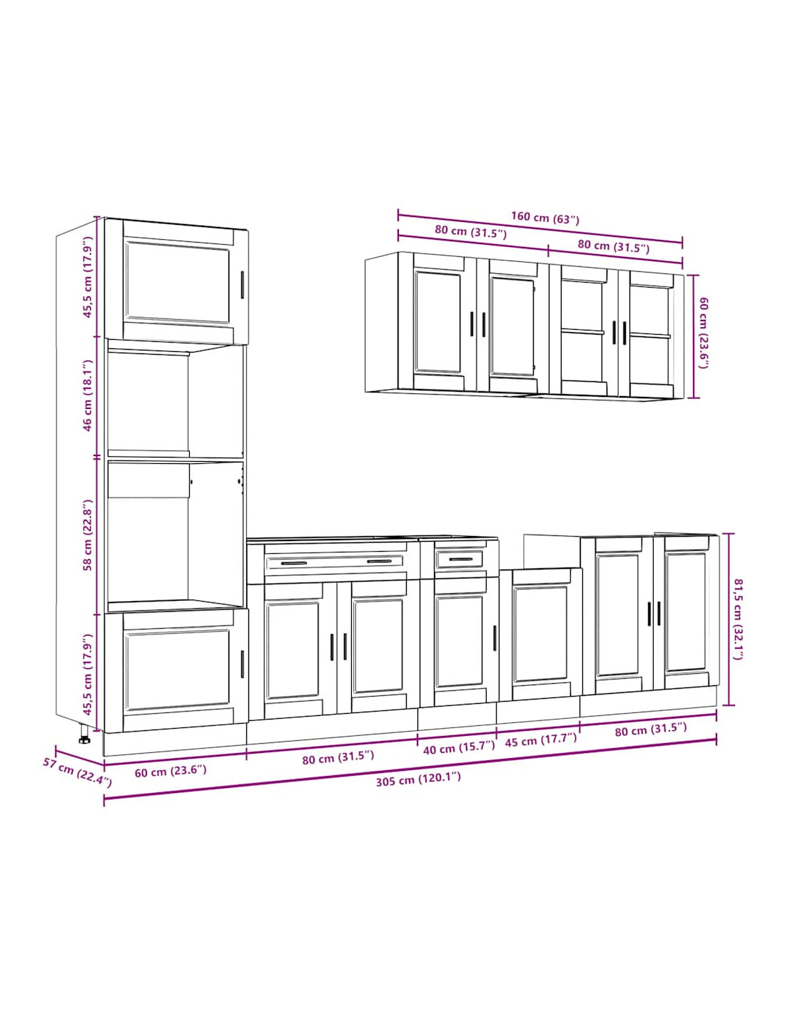 - 1 x Pensile per cucina: 80 x 31 x 60 cm (L x P x A)