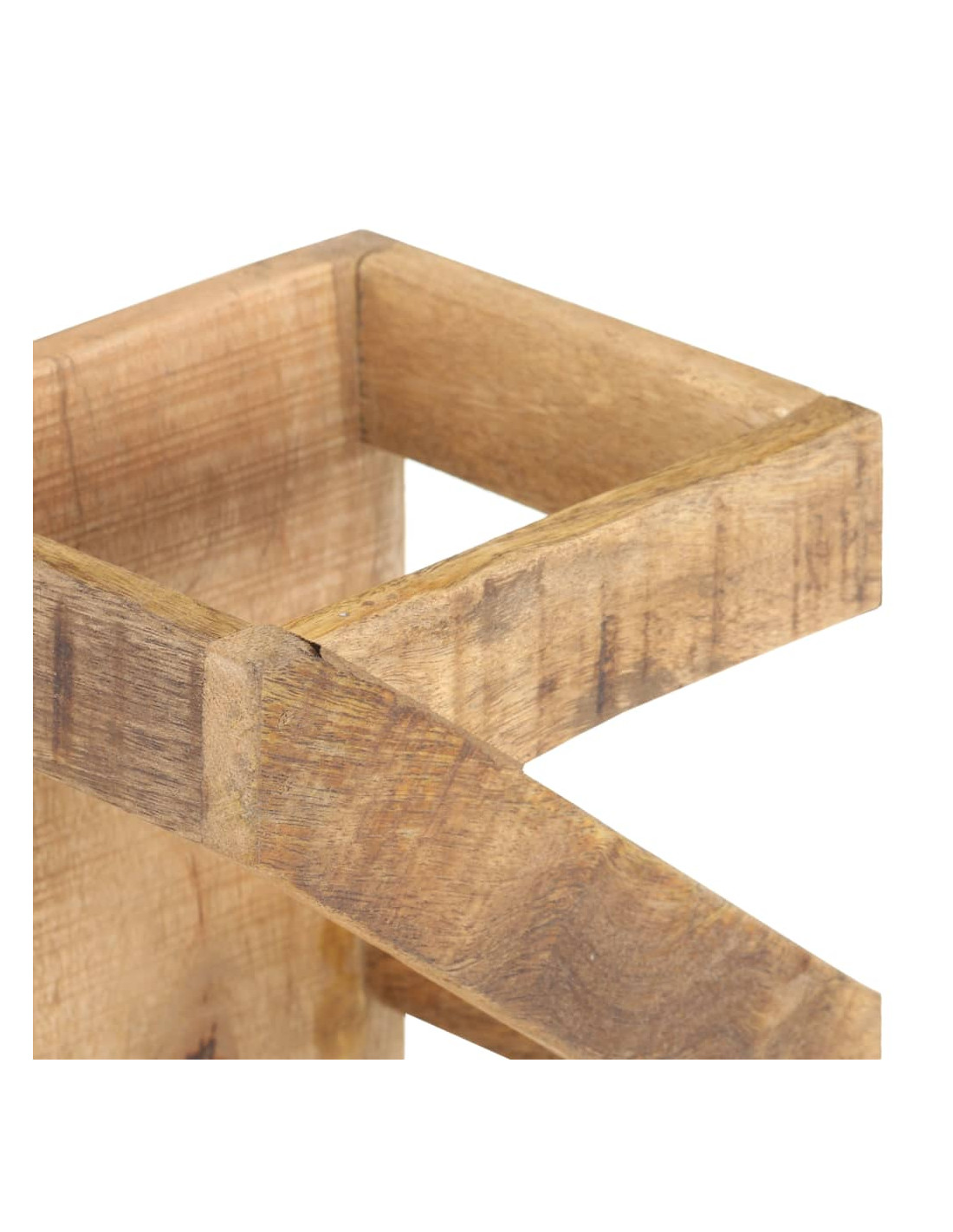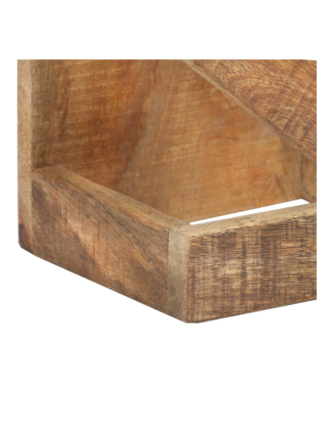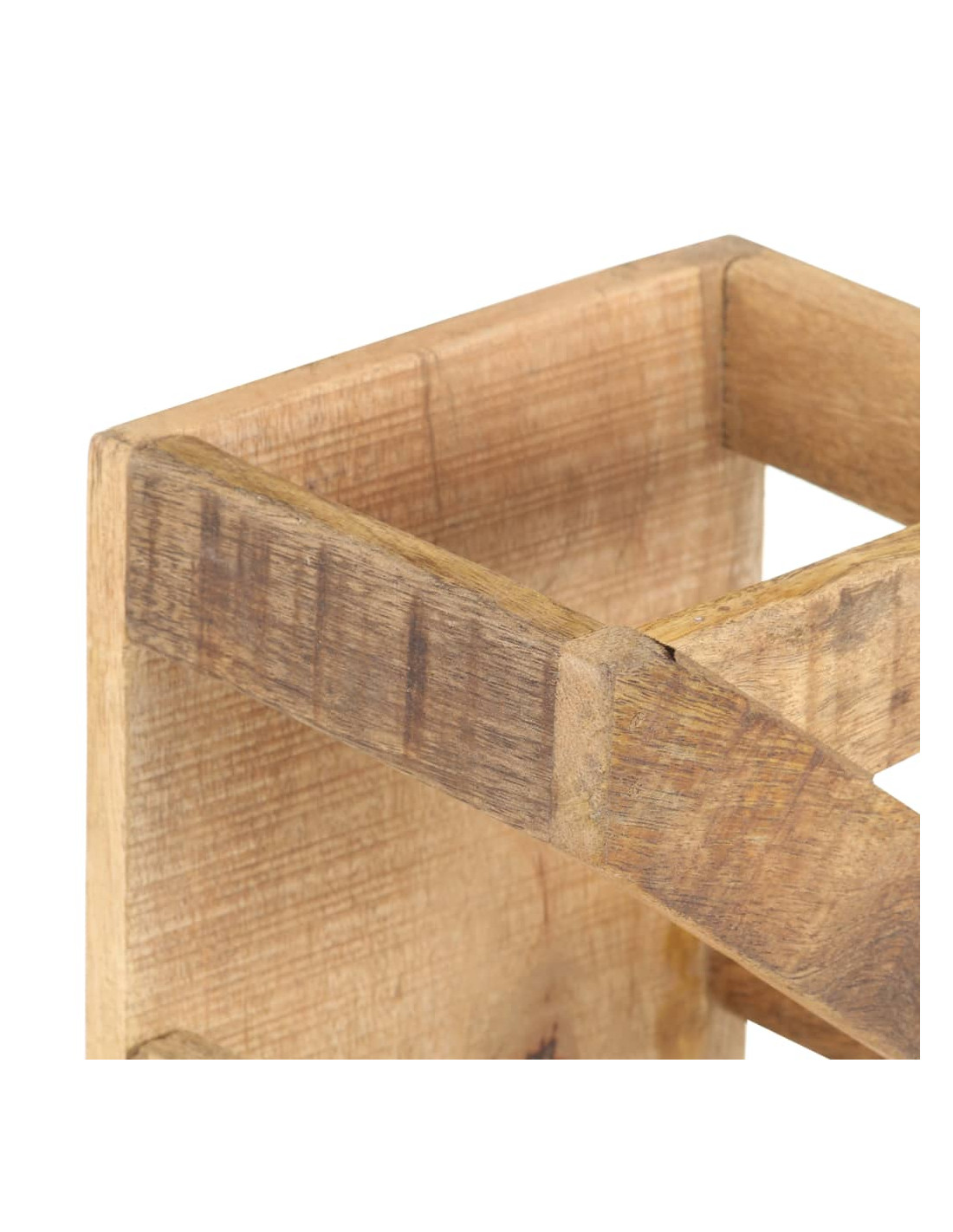 Il portabottiglie è realizzato in legno massello di mango, un legno duro tropicale abbastanza resistente da sopportare grandi carichi. Questo mobile resiste all'usura del tempo, infatti è solido e durevole, e può contenere fino a 5 bottiglie. Ogni ripiano è caratterizzato da venature uniche. Questo portavino da parete funge anche da elemento decorativo.