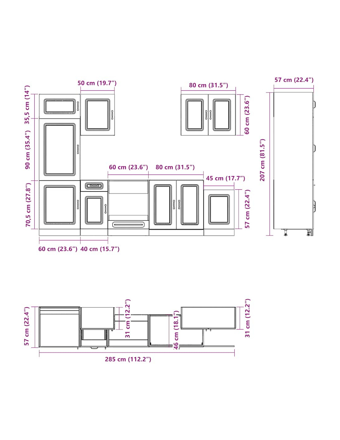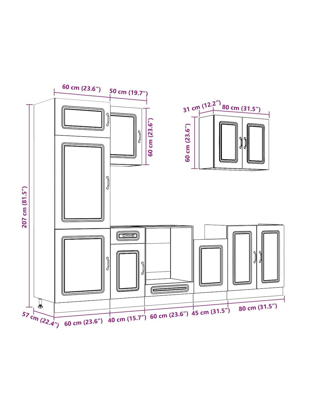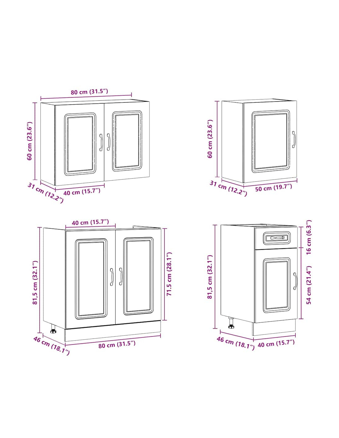 - 1 Pensile da cucina: 80 x 31 x 60 cm (L x P x A)