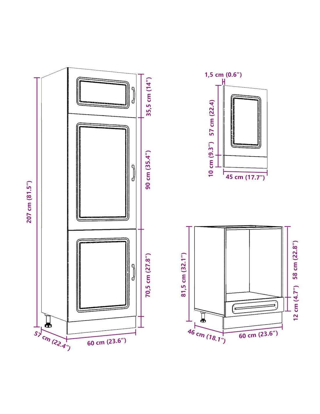 - 1 Armadio inferiore per forno: 60 x 46 x 81,5 cm (L x P x A)