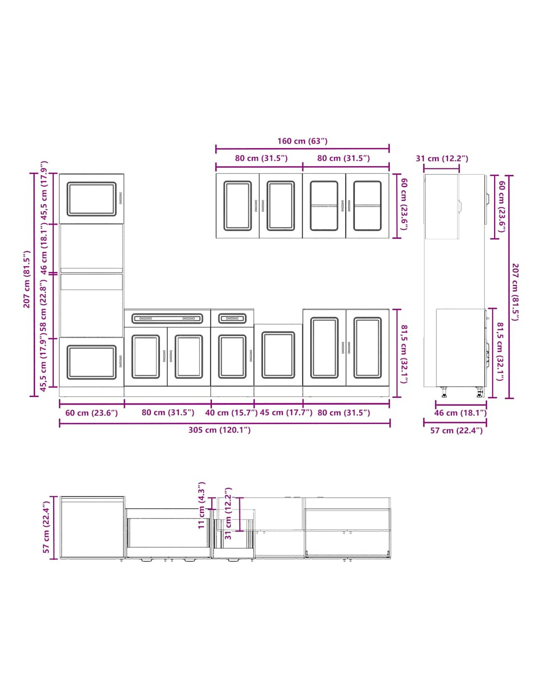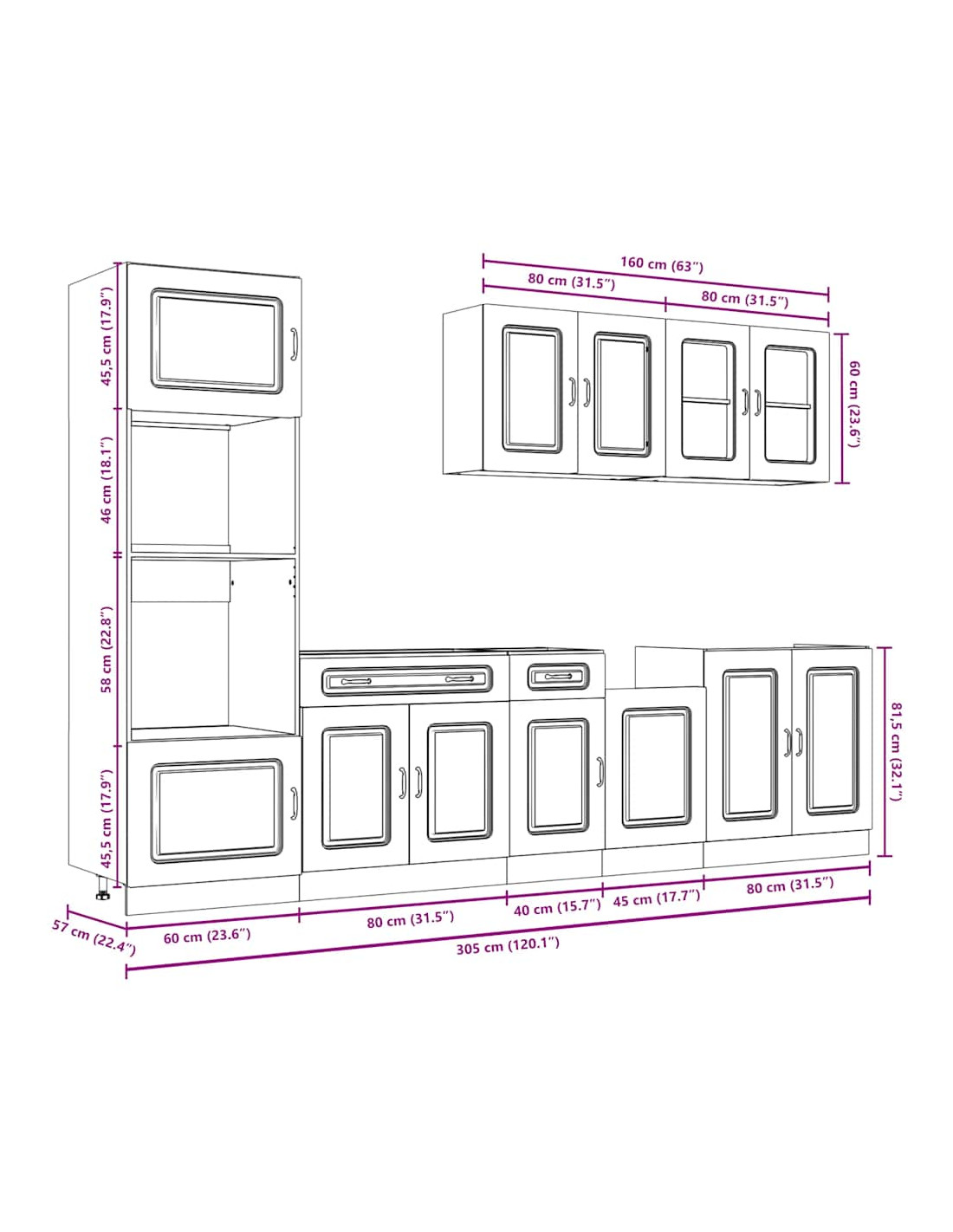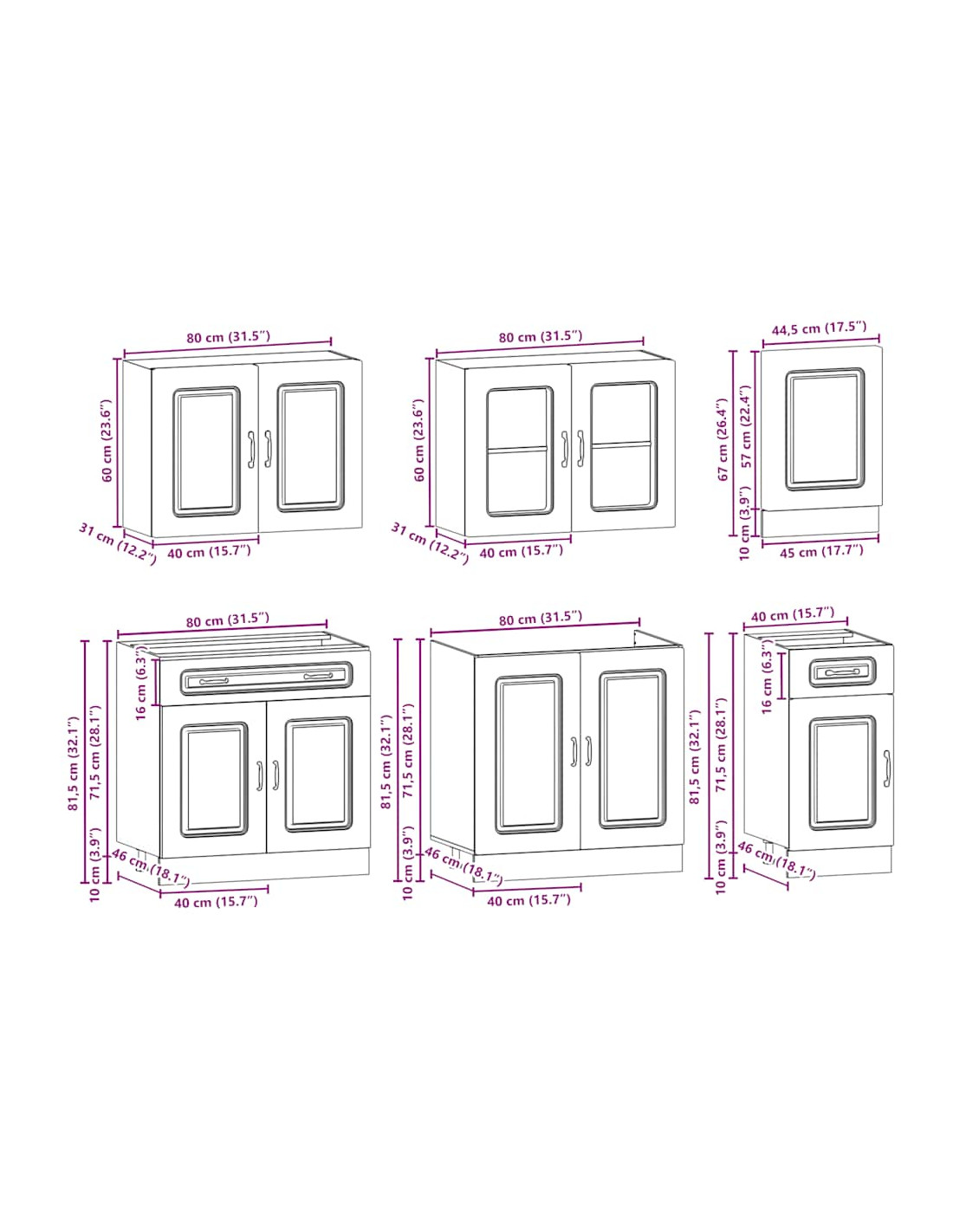 - 1 Pensile da cucina: 80 x 31 x 60 cm (L x P x A)
