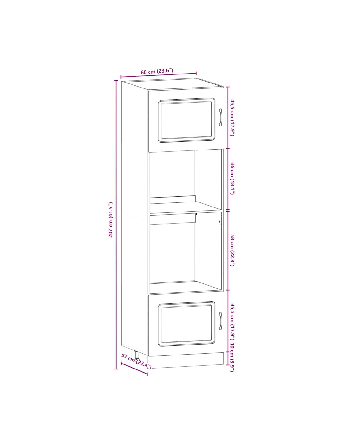 - 1 Armadio da cucina: 60 x 57 x 207 cm (L x P x A)