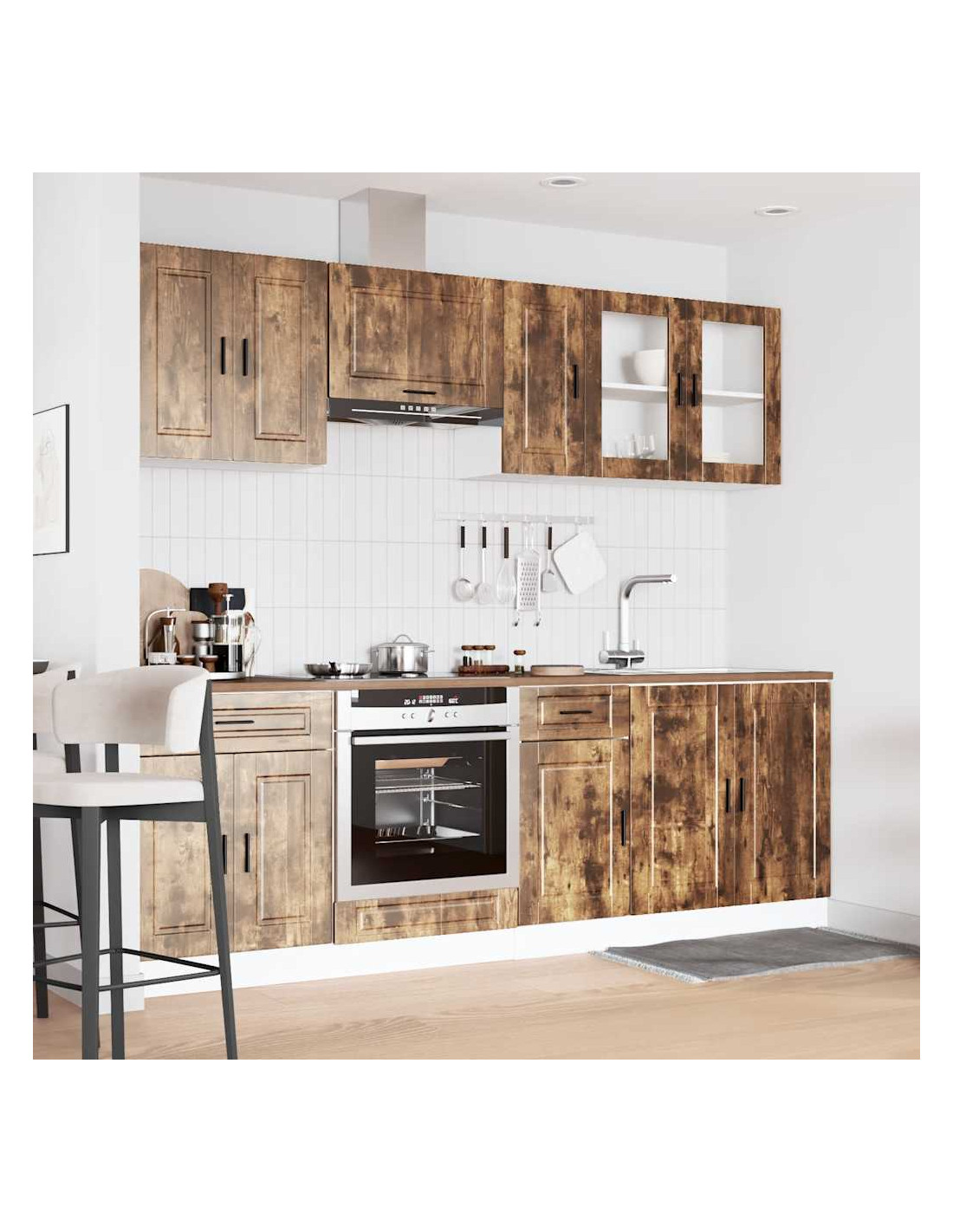 Questo set di mobili da cucina da 8 pezzi, con il suo design elegante, ottimizza lo spazio della tua cucina e offre ampio spazio per riporre i tuoi effetti personali!