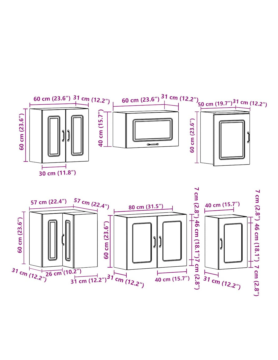 - 1 Pensile da cucina: 80 x 31 x 60 cm (L x P x A)