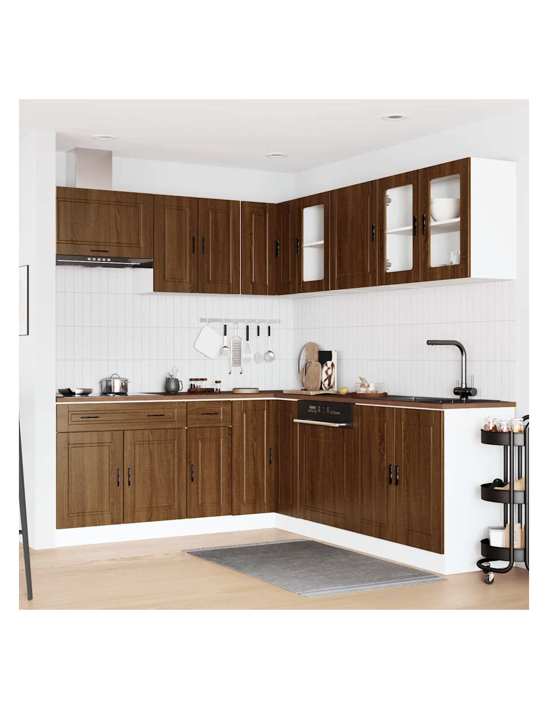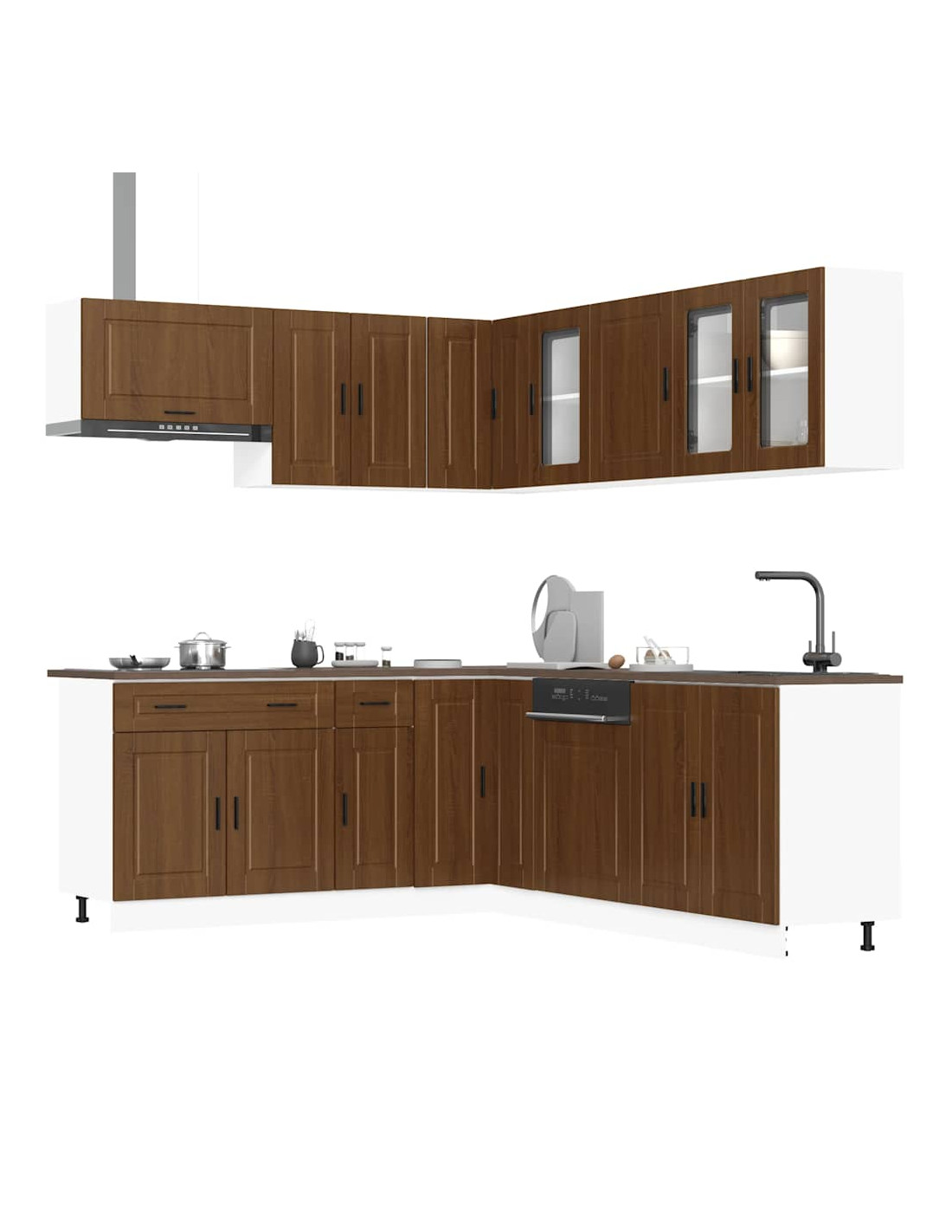 Questo set di 11 mobili da cucina, con il suo design elegante, ottimizza lo spazio della vostra cucina e offre ampio spazio per riporre i vostri effetti personali!