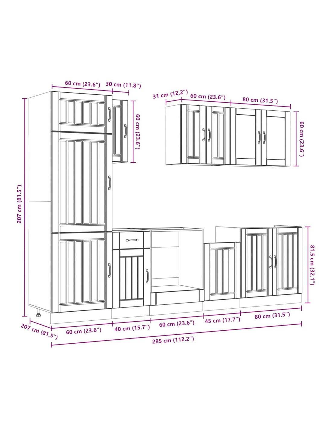 - 1 x Mobile pensile per cucina: 60 x 31 x 60 cm (L x P x A)