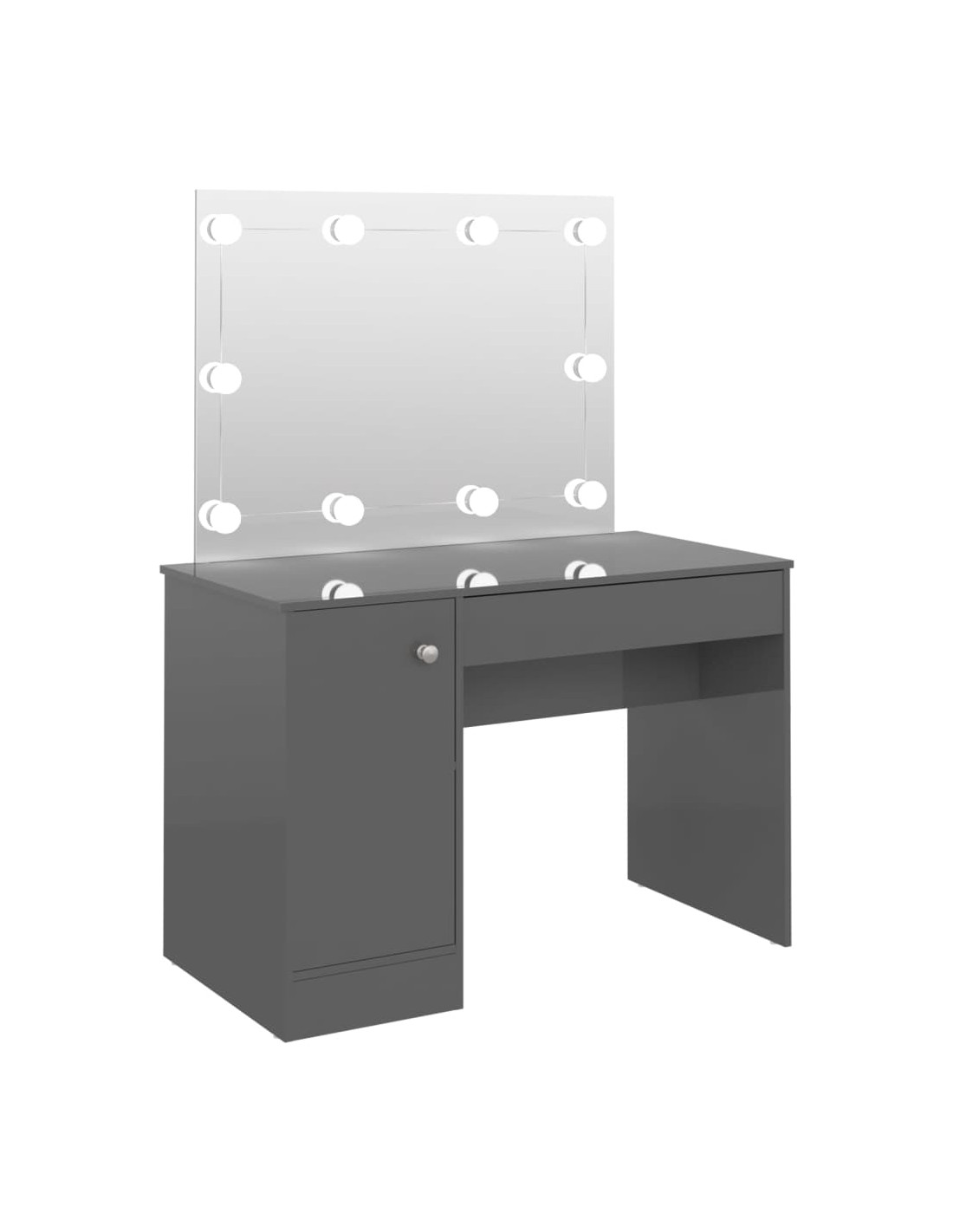 Questo tavolo da trucco, realizzato in MDF, è caratterizzato da una silhouette elegante ed essenziale in stile moderno. Offre ampio spazio per gli oggetti da trucco, in modo da mantenere tutto in ordine. Inoltre, un bellissimo specchio vi permette di applicare il trucco facilmente e aggiunge un tocco elegante al piano del tavolo. Le eleganti lampadine a LED illuminano anche la tua bellezza.