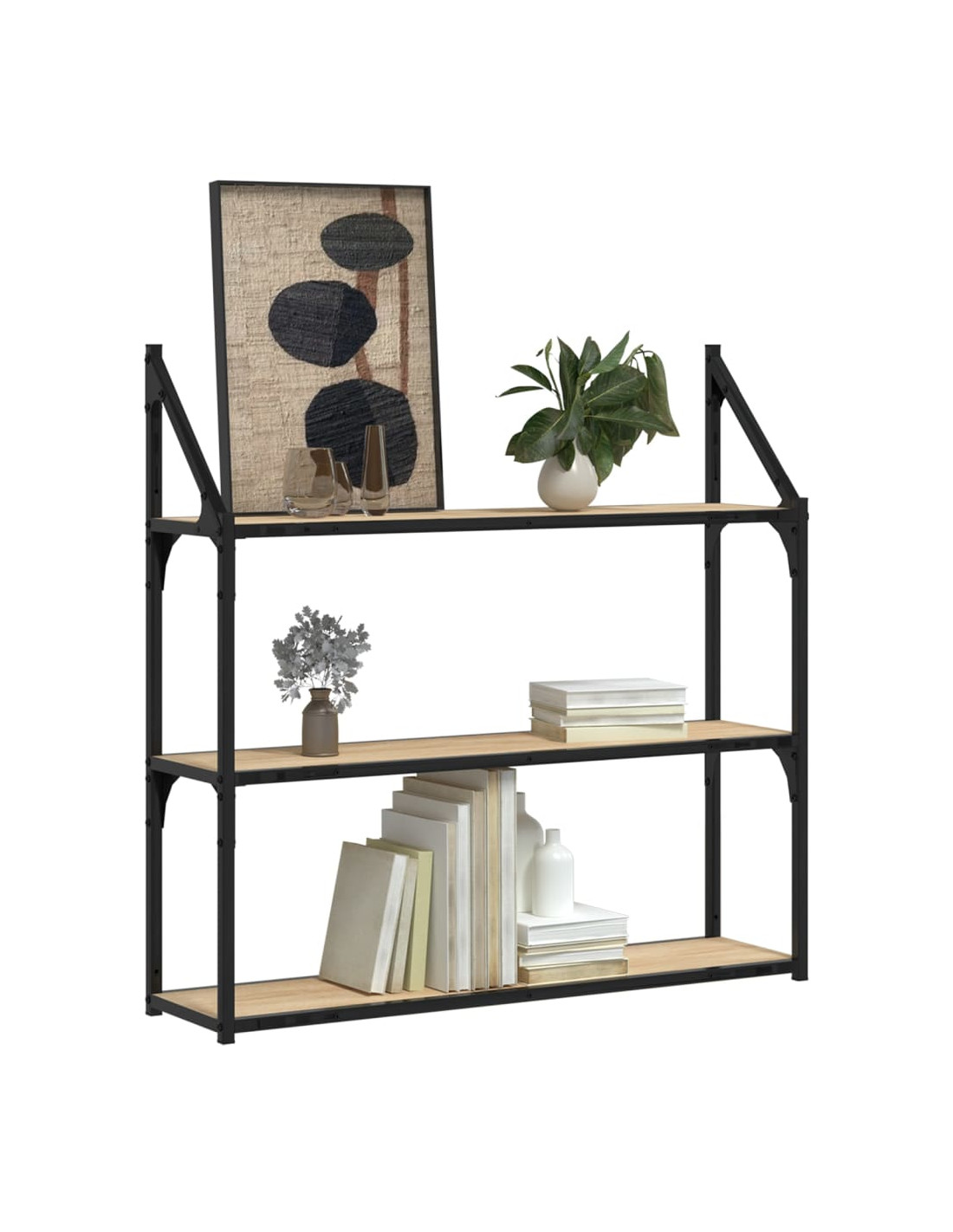 - Ampio spazio portaoggetti: Il portaoggetti pensile a 3 livelli offre un ampio spazio per riporre libri, piante, foto incorniciate, e qualsiasi altro oggetto.