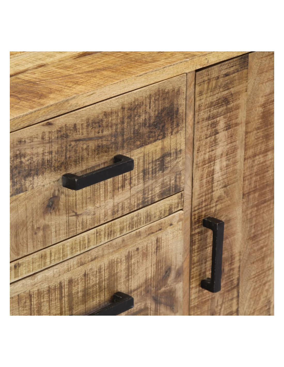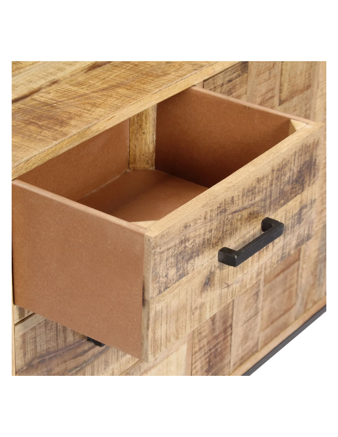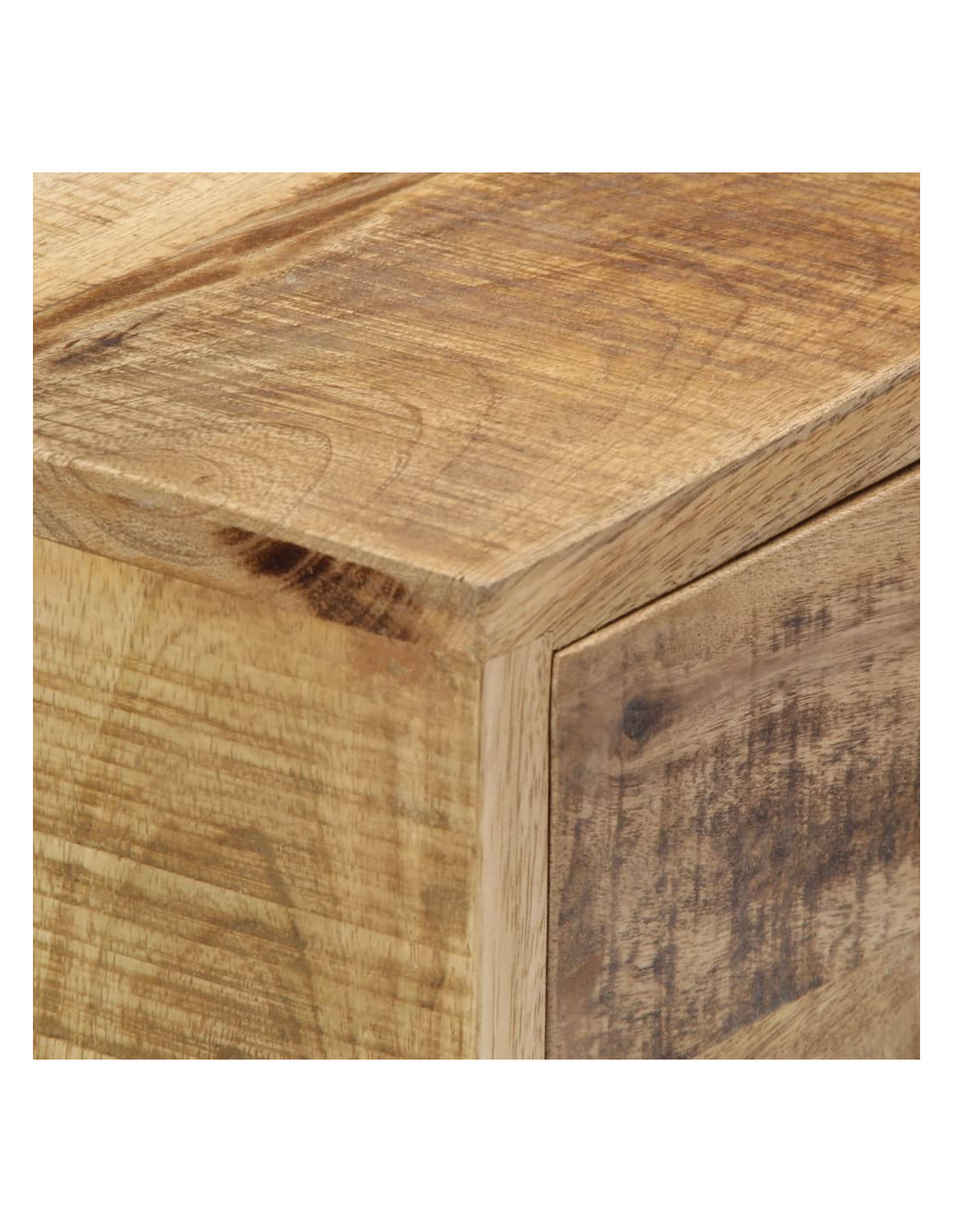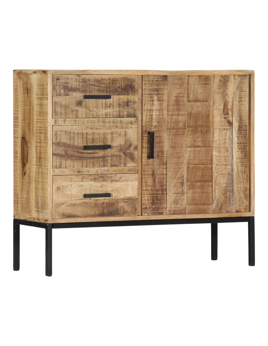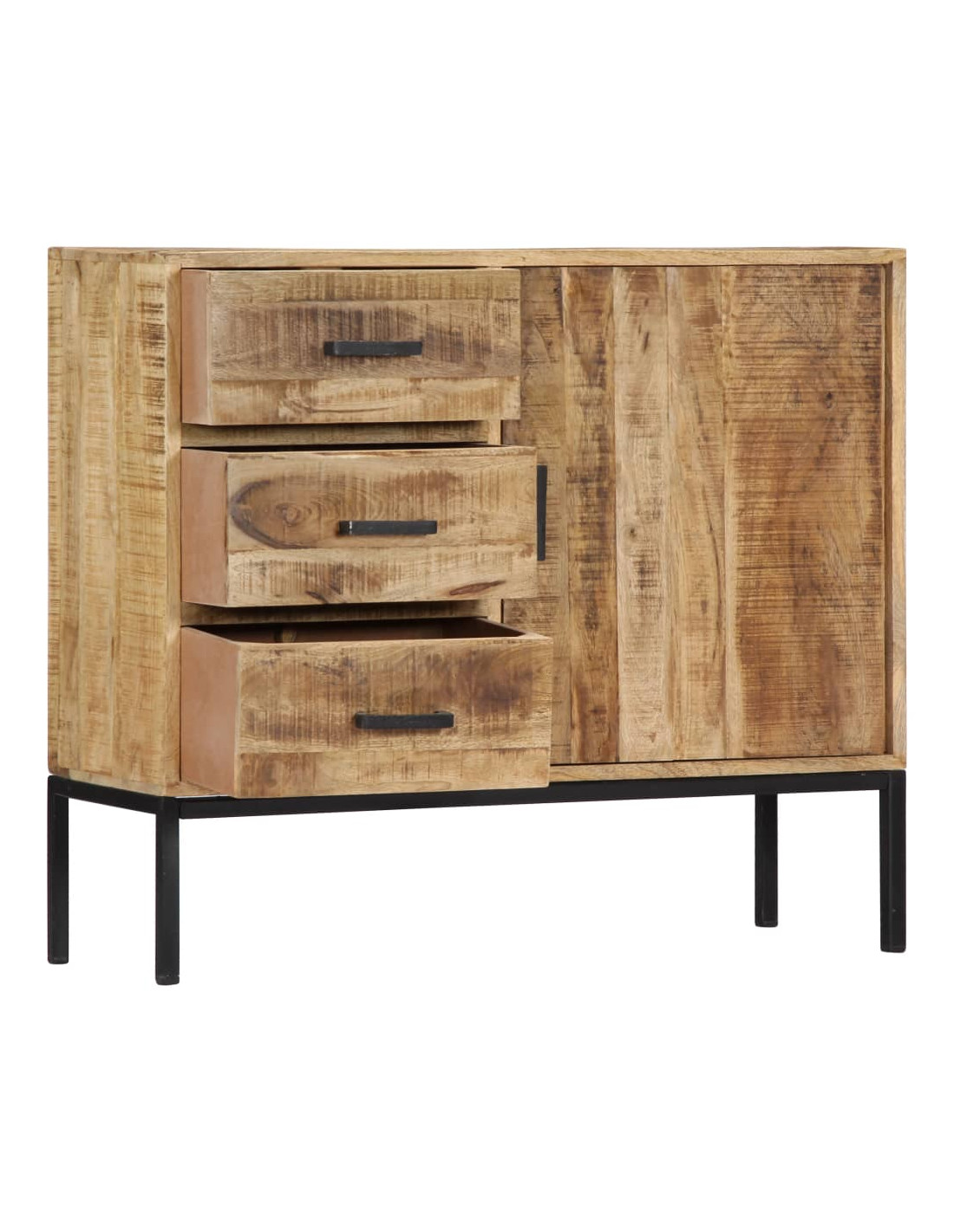 Questo mobile è realizzato in legno massello di mango, un legno duro con dense venature. Il mango grezzo non solo ha la forza di sopportare grossi pesi, ma resiste anche all'usura del tempo. Di conseguenza, questa dressoir dal design accattivante è estremamente stabile, durevole ed esteticamente accattivante. Inoltre, questo mobile in legno è interamente realizzato a mano e le graziose venature del legno rendono ogni mobile distintivo e leggermente diverso dagli altri. Questa cassettiera è dotata di 3 cassetti e 1 mobile con anta, che offrono ampio spazio per riporre vestiti, libri e vari altri oggetti.