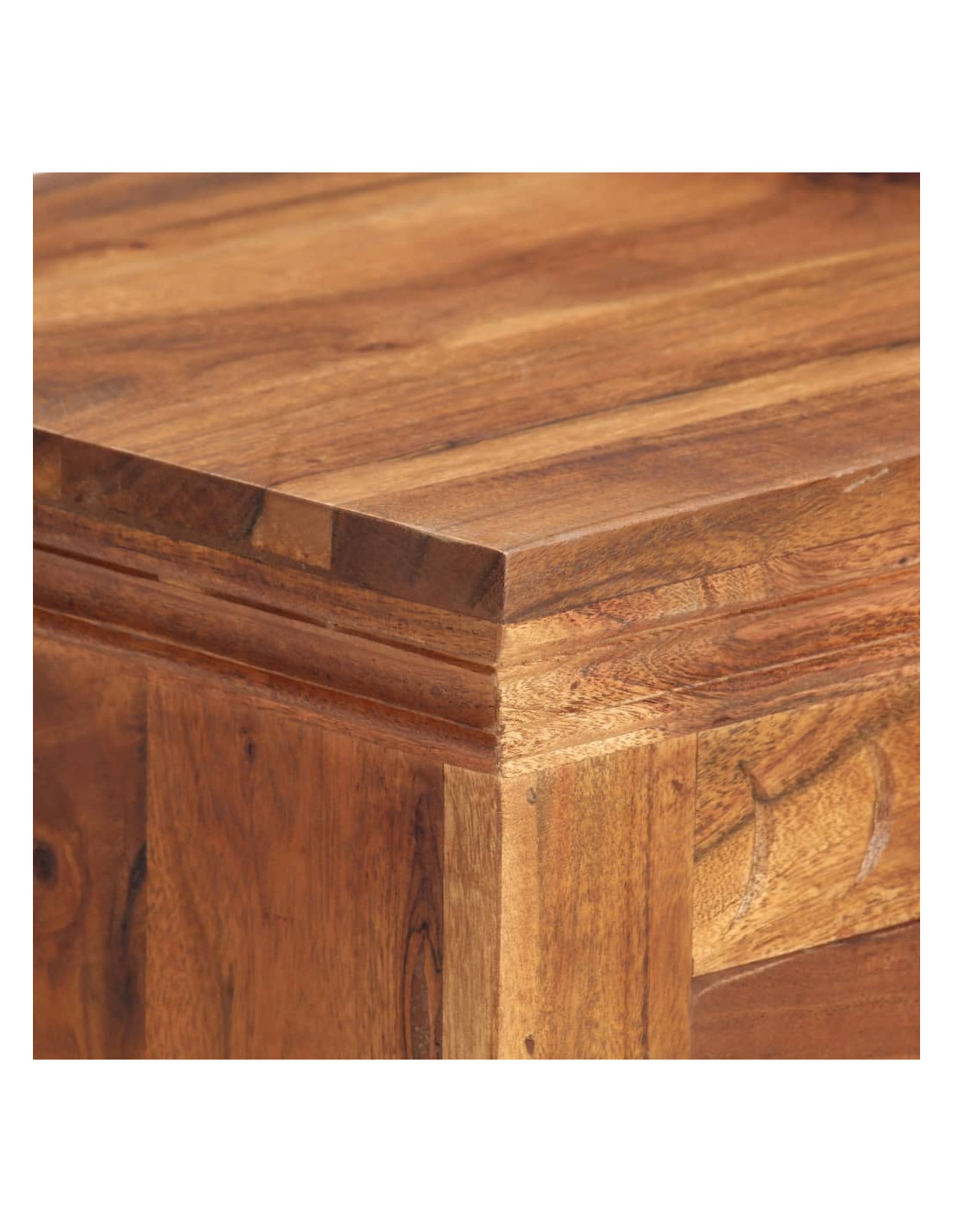 La credenza è realizzata in legno massello di acacia, un legno duro altamente stabile e durevole. Il robusto piano è ideale per posizionare oggetti decorativi come vasi o piante in vaso. L'armadio offre ampio spazio di stoccaggio per mantenere i vari oggetti ordinatamente organizzati. I suoi motivi decorativi unici aggiungono fascino moderno alla credenza. Non è richiesto alcun assemblaggio.
