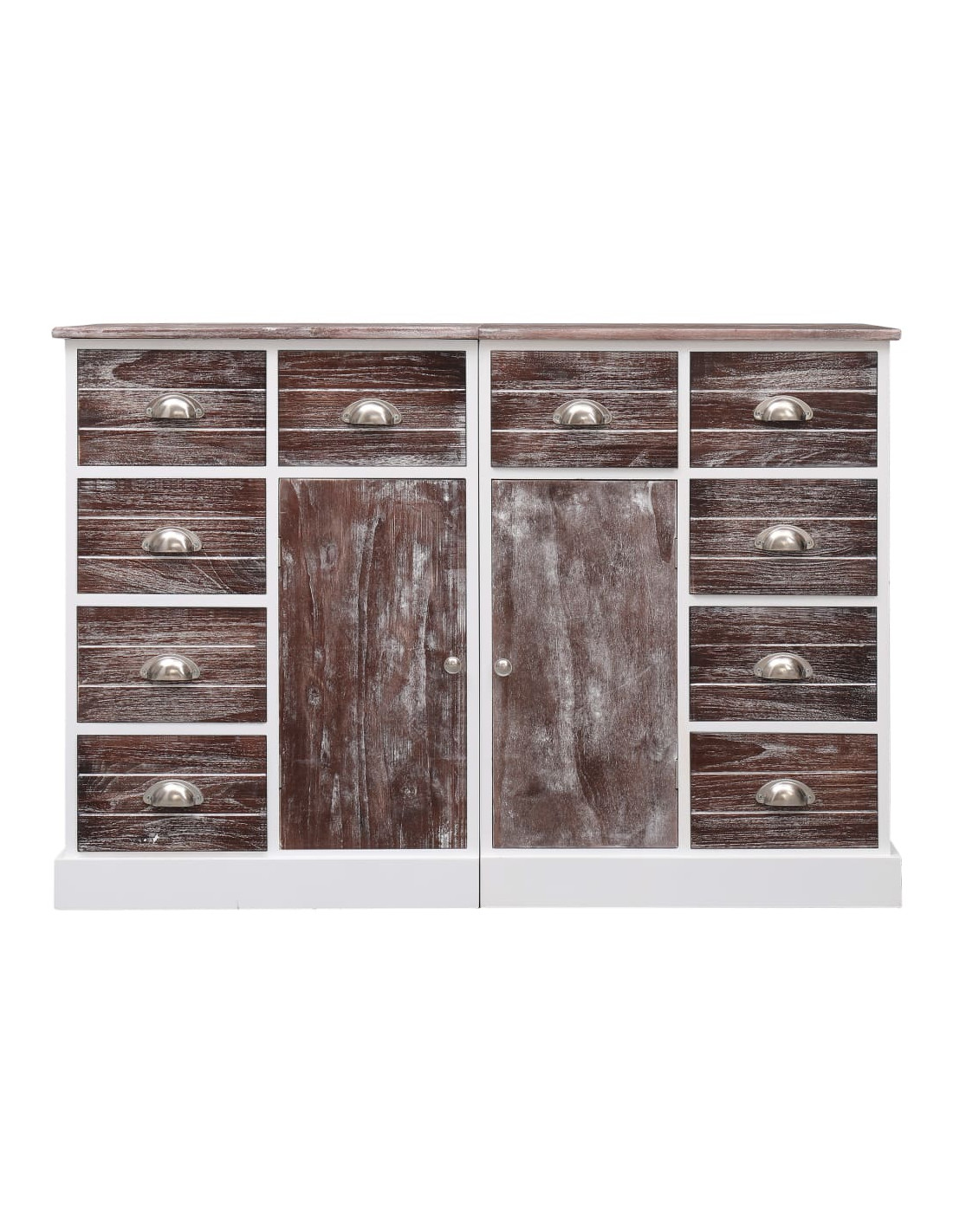 Realizzato in paulownia di qualità, legno di pioppo e pannelli MDF, questo set di credenze è estremamente robusto e durevole. Si compone di 10 cassetti e 2 armadietti per fornire ampio spazio per riporre i vostri vari oggetti, come chiavi, taccuini, libri, riviste o altri soprammobili ed elementi essenziali. Inoltre, l'ampio piano è l'ideale per posizionare elettrodomestici multimediali o per esporre oggetti d'arredo. Potete combinare due credenze insieme come una grande o separarle come due singole.