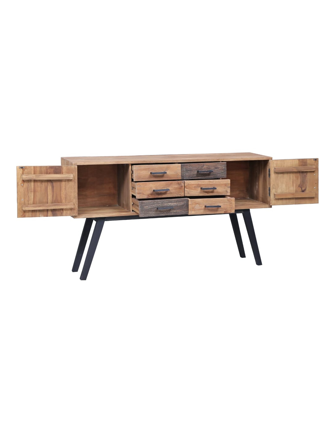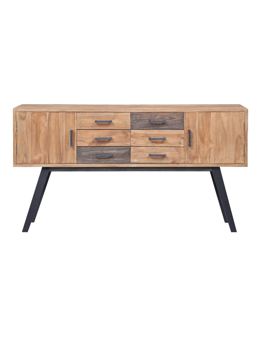 La credenza è caratterizzata da un piano in legno massello che risulta ideale per esporre oggetti decorativi, cornici fotografiche o persino piante in vaso; allo stesso tempo, i suoi sei cassetti e due scomparti offrono ampio spazio per tenere tutti i tipi di oggetti più piccoli organizzati e a portata di mano.