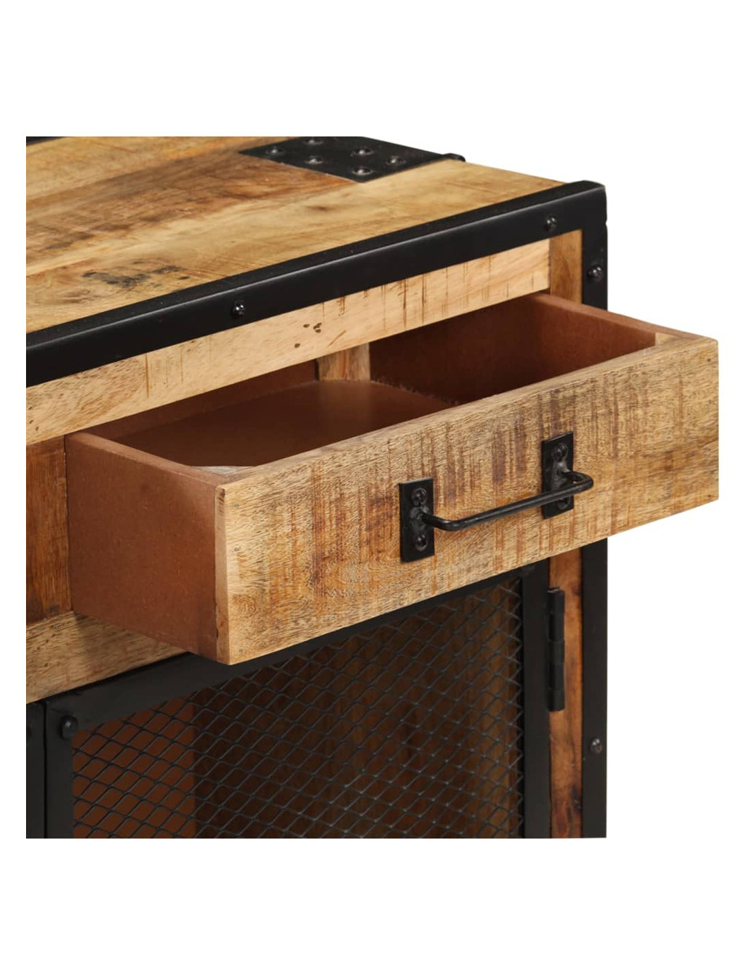Questa credenza in legno in stile industriale sarà un'aggiunta decorativa e pratica al vostro arredamento.