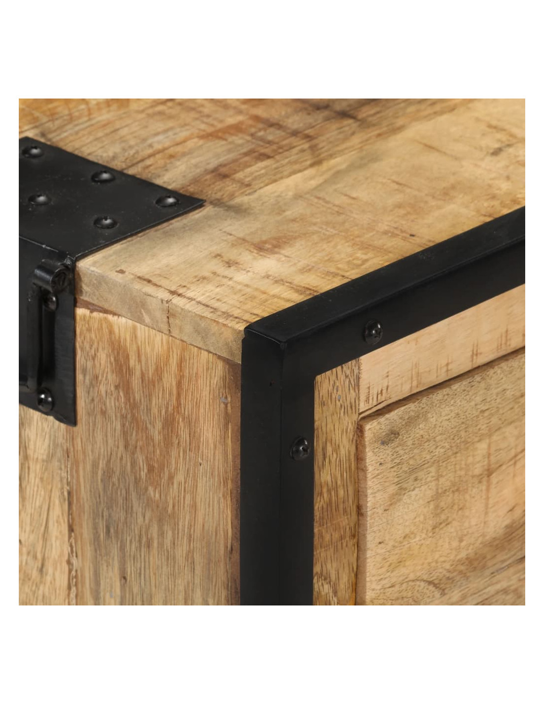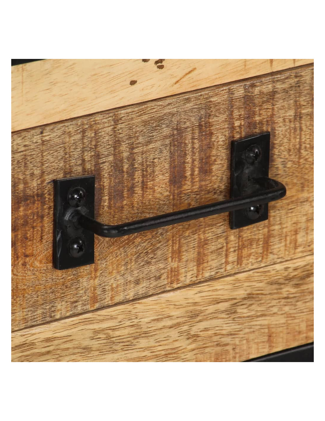 L'armadietto è artigianale, lavorato in acciaio e legno massello di mango grezzo, che lo rende robusto e stabile. L'artigianalità e le bellissime venature del legno rendono ogni mobile unico e leggermente diverso dall'altro. Inoltre, questo mobile laterale ha un ampio spazio di stoccaggio per mantenere gli oggetti importanti organizzati e a portata di mano.