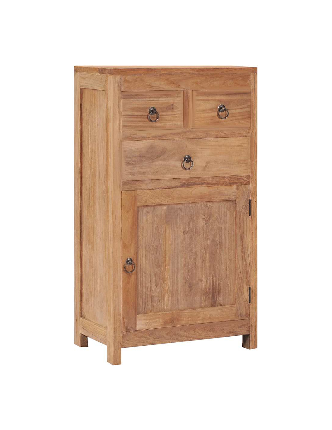 Il mobile è realizzato in legno massello di teak, che lo rende molto durevole e resistente. Il robusto piano è ideale per posizionare alcuni oggetti decorativi come vasi o piante in vaso. Questo mobiletto offre ampio spazio di stoccaggio per mantenere i vari oggetti ordinatamente organizzati. Questo prodotto è facile da montare.