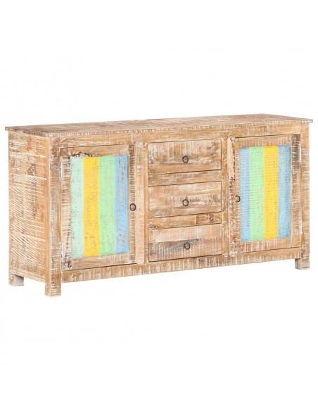 La credenza è realizzata in legno massello di acacia grezzo, che la rende stabile e resistente. La lavorazione artigianale e le belle venature del legno rendono ogni mobile unico e leggermente diverso dagli altri. Questa credenza dispone anche di 2 ante e 3 cassetti, offrendo ampio spazio per riporre i vostri oggetti essenziali organizzati e a portata di mano.
