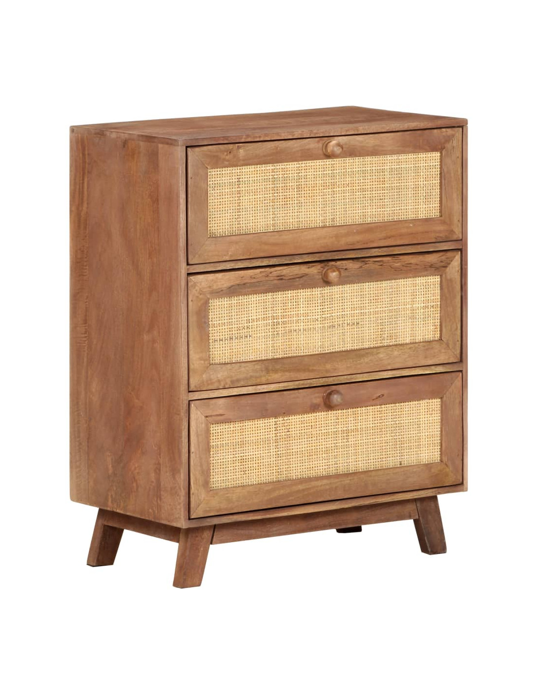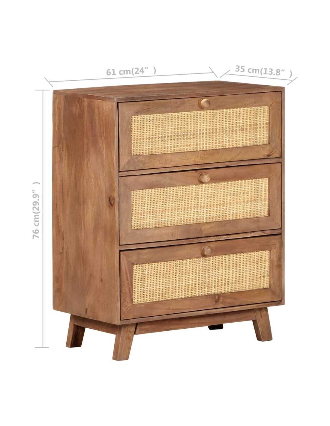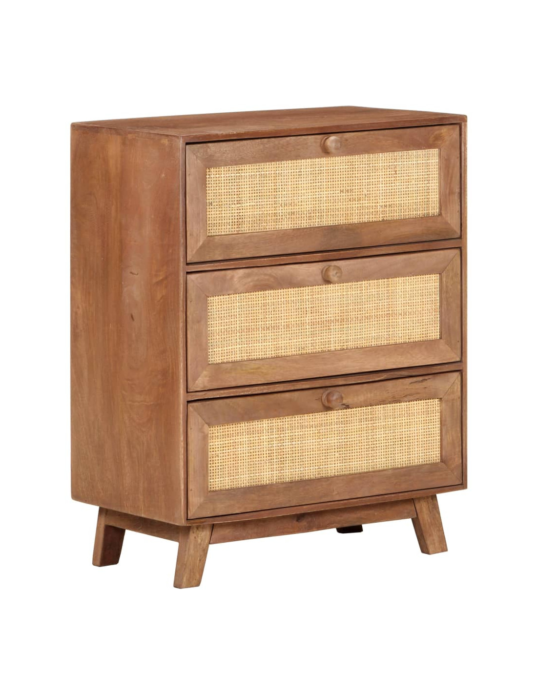 Questa cassettiera è realizzata in legno massello di mango, un legno duro tropicale. Ha la forza di sopportare il peso e resiste anche all'usura del tempo. Inoltre, la squisita fattura e le bellissime venature del legno rendono ogni pezzo leggermente diverso dagli altri. Questo mobile stereo è dotato di 3 cassetti, fornendo ampio spazio di stoccaggio per i vostri accessori.
