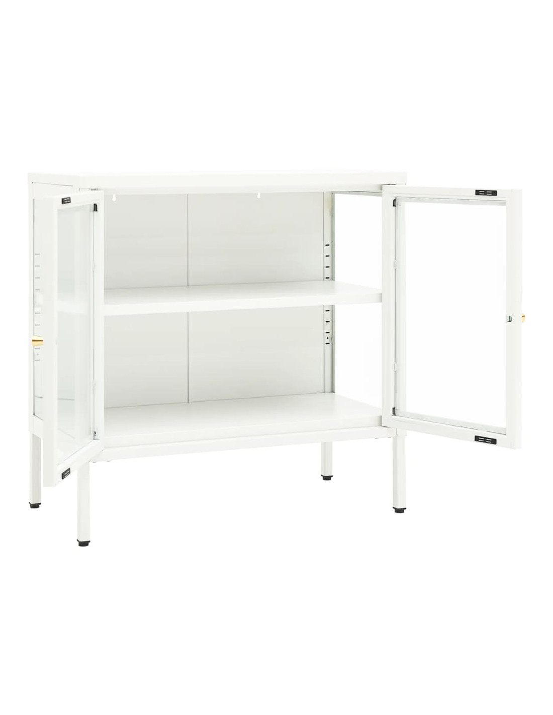 Realizzata in acciaio, questa credenza ha una struttura robusta e durevole, che garantisce anni di servizio. Il mobile è dotato di scomparti visibili attraverso l'anta in vetro, che offrono ampio spazio per riporre e tenere libri, riviste, DVD, vasi e altri oggetti decorativi ben organizzati e a portata di mano. Inoltre, lo scaffale può essere installato a diversi livelli per modificare le dimensioni dello spazio di stoccaggio. I piedini possono essere facilmente regolati all'altezza necessaria e aiutano a mantenere il mobile stabile. Inoltre, è anche facile da pulire con un panno umido.