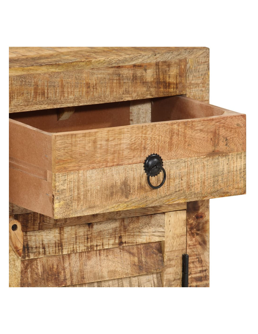 Il mobile è realizzato in legno massello di mango, robusto e stabile, e la fattura a mano aggiunge uno stile retrò spettacolare. Il piano robusto è ideale per esporre cornici, vasi, ceste di frutta, o altri oggetti decorativi. Inoltre, i 3 cassetti e le 3 ante offrono un ampio spazio dove riporre i vostri oggetti e tenerli lontani dalla polvere e in ordine.