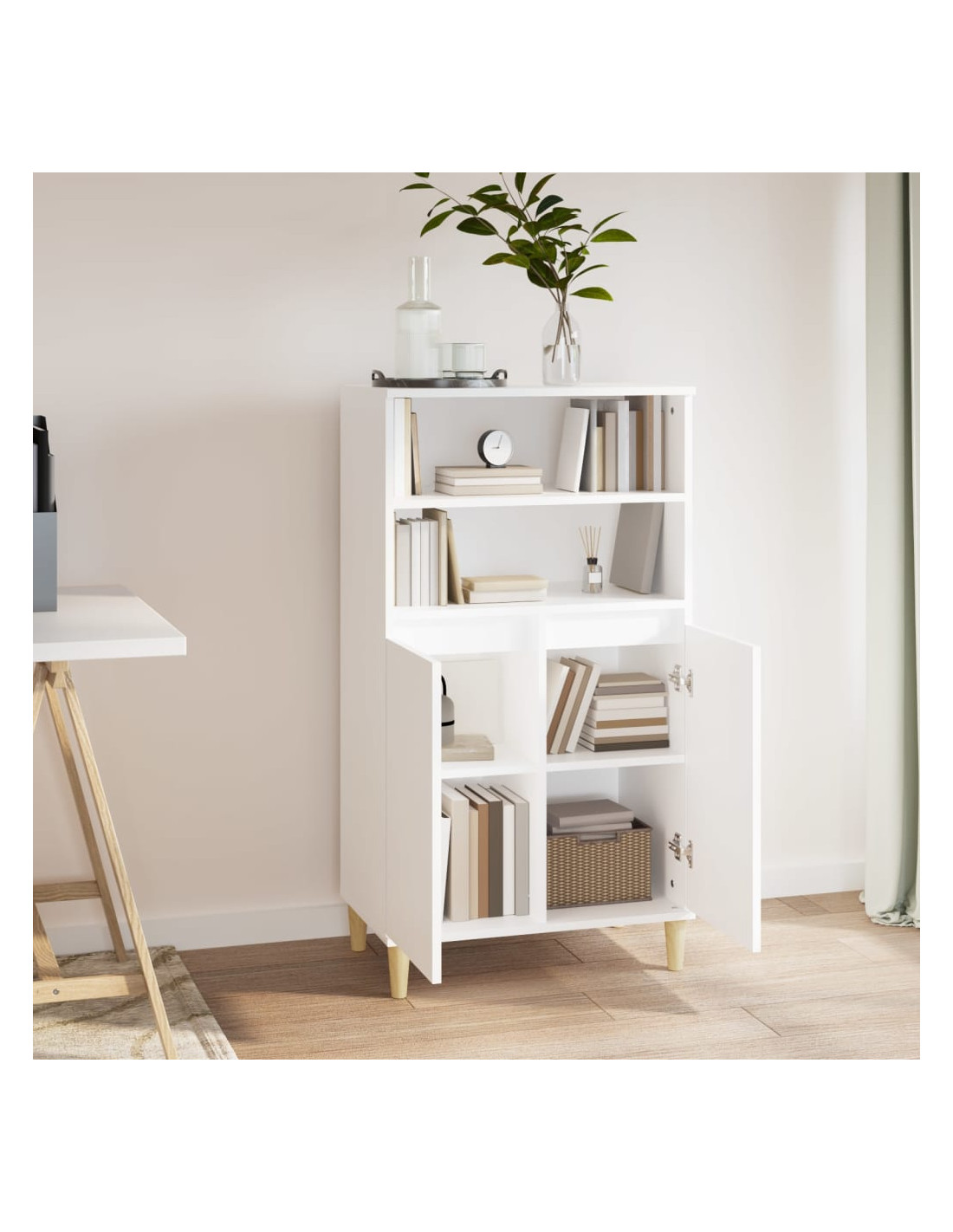 - Piano d'appoggio robusto: Potete anche posizionare le vostre foto, decorazioni o fiori preferiti sopra questa credenza per arricchire il vostro ambiente.