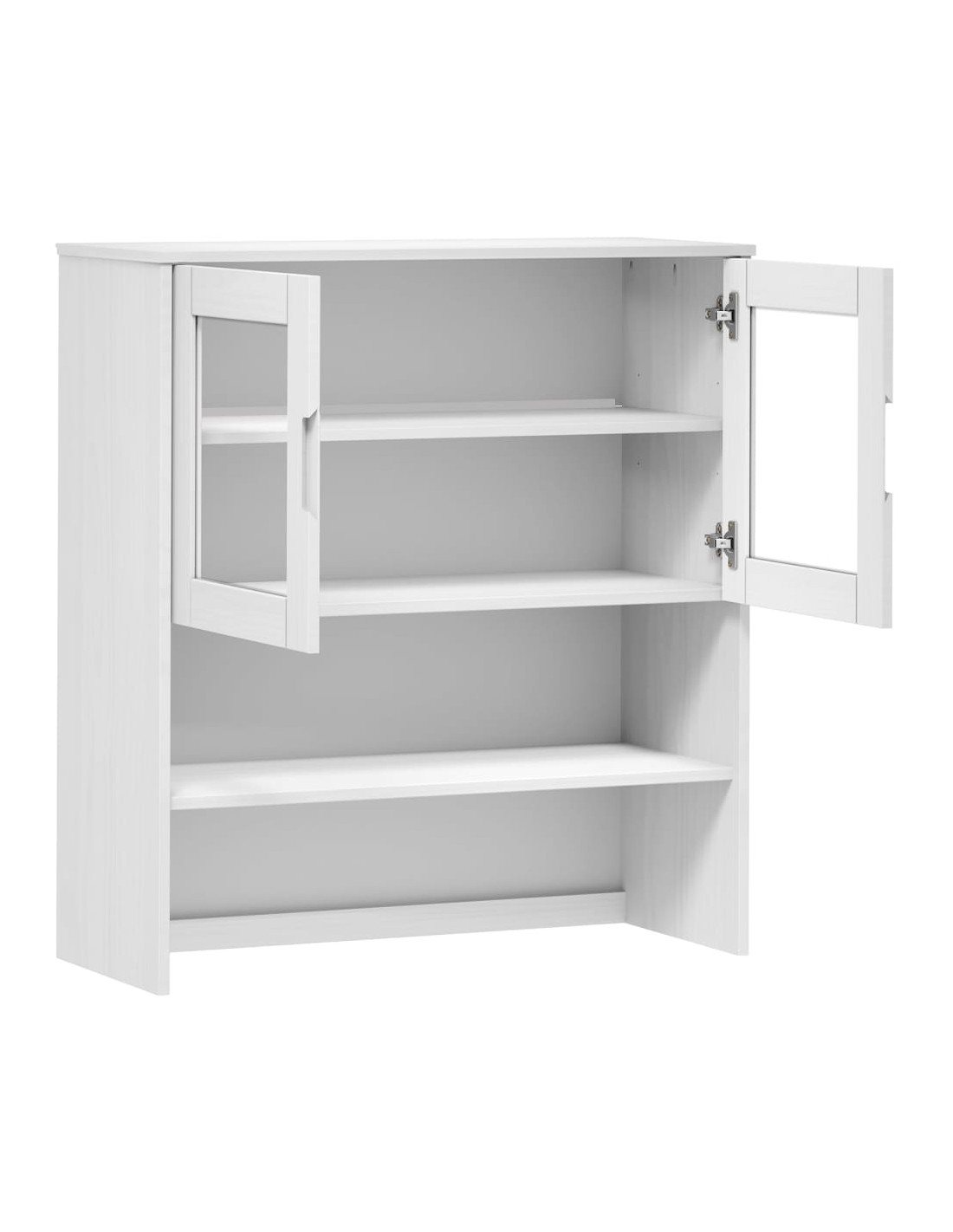 - Materiale: Legno massello di pino con finitura in vernice UV, legno multistrato, vetro temperato