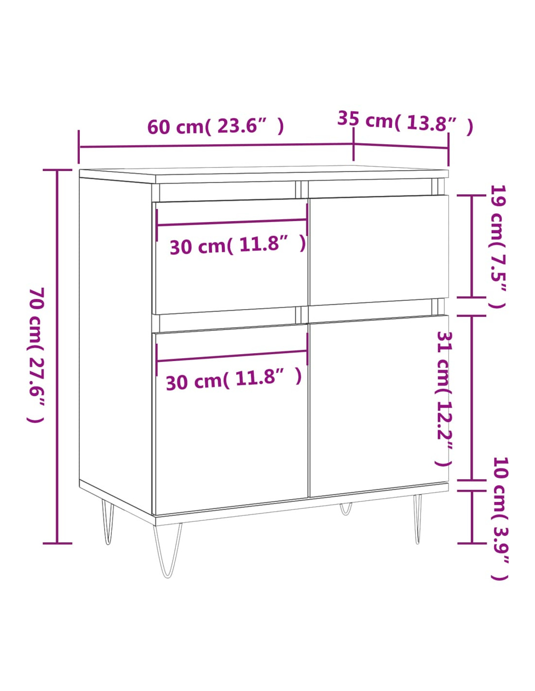 • Dimensioni: 60 x 35 x 70 cm (L x P x A)