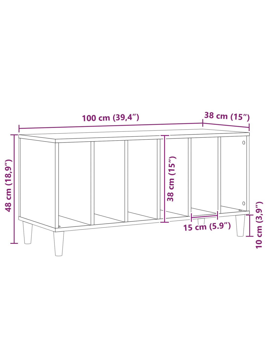 Questo mobile per dischi è un'aggiunta elegante e pratica a qualsiasi soggiorno, con un design moderno e linee pulite. Costruito in legno ingegnerizzato, offre il giusto mix di semplicità e funzionalità, integrandosi bene negli spazi contemporanei.