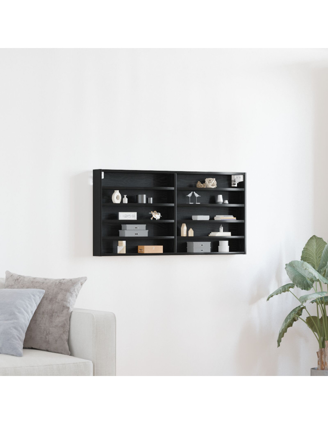Questo armadietto da parete in legno ingegnerizzato porta un tocco di eleganza moderna e funzionalità a qualsiasi stanza. Con il suo design raffinato e montato a parete, offre una soluzione di stoccaggio sofisticata, dando molto spazio per esporre i tuoi oggetti più amati, pur mantenendo un ambiente organizzato e stiloso.