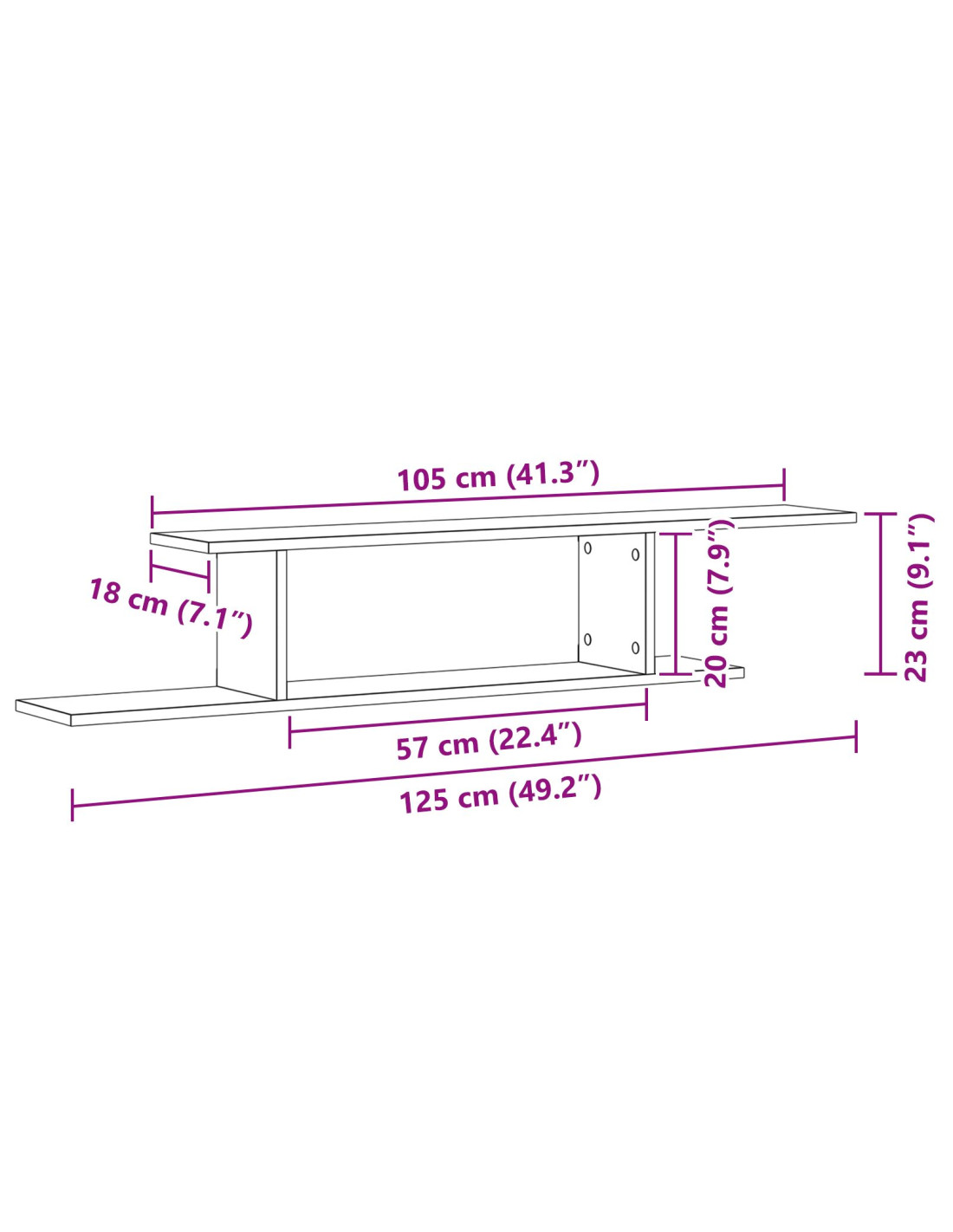 - Dimensioni complessive: 125 x 18 x 23 cm (L x P x A)