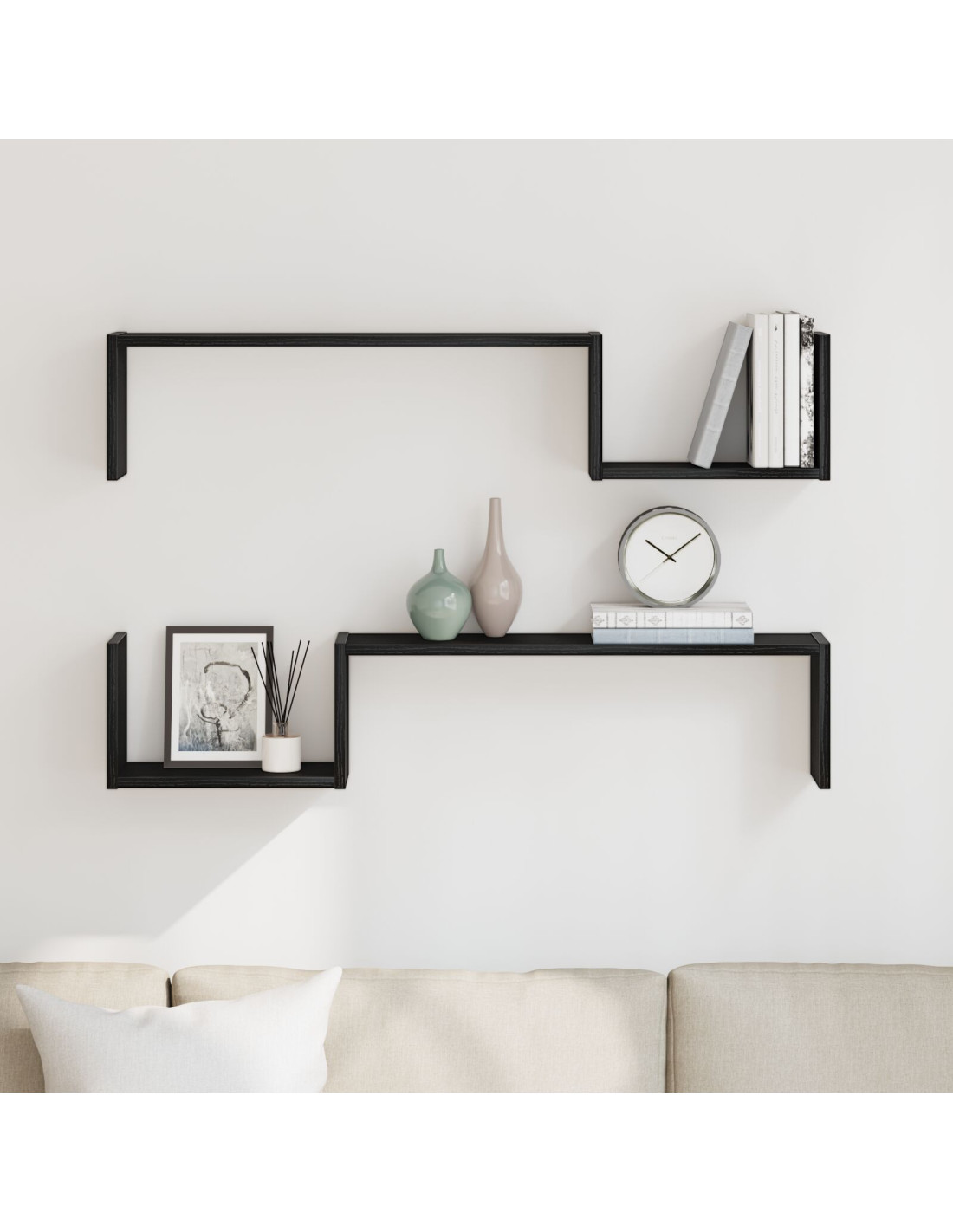 - Semplicità nello stile: Con il suo design moderno e minimalista, questa mensola si integra bene in qualsiasi ambiente domestico. Le linee pulite e la mancanza di fronzoli sottolineano la sua eleganza semplice, rendendola una scelta adatta per interni moderni. Che la usi in soggiorno, studio o corridoio, il suo stile è adattabile.