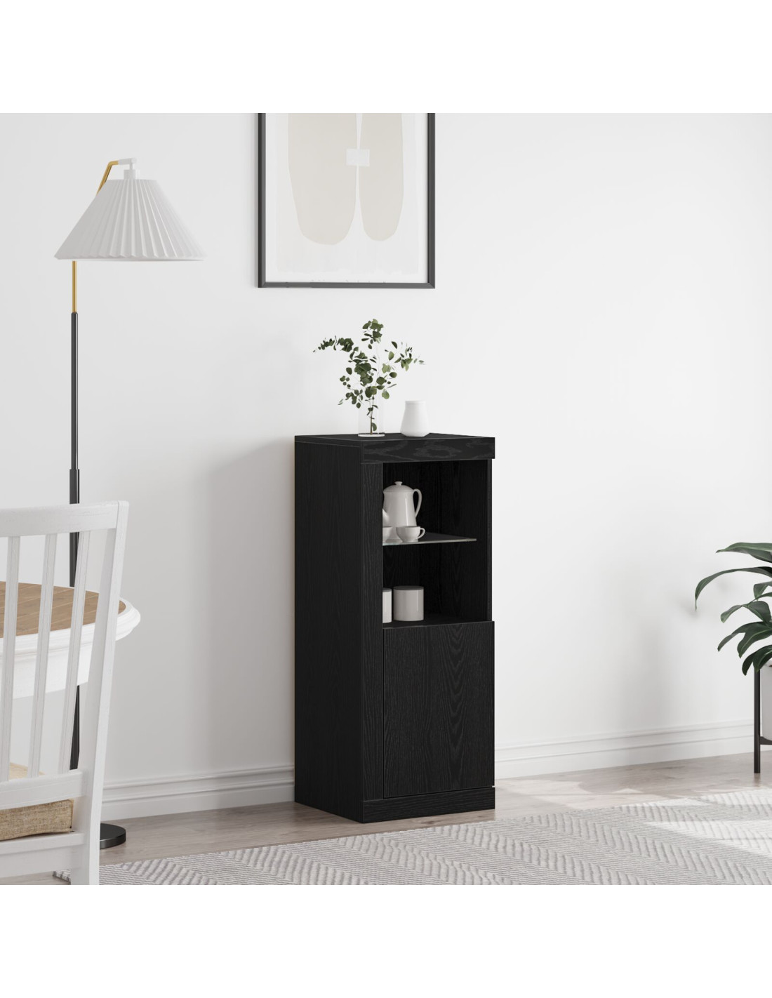 Il sideboard LED moderno è sia un'unità di stoccaggio che un oggetto di design per soggiorni o sale da pranzo. Caratterizzato da linee semplici e minimali, porta un tocco contemporaneo rendendolo un’aggiunta elegante a qualsiasi ambiente. Gli ampi compartimenti e gli scaffali integrati offrono uno stoccaggio ben organizzato per gli accessori da pranzo o da soggiorno. Le strisce LED RGB migliorano visivamente lo spazio, illuminando oggetti preziosi e creando un'atmosfera accogliente.