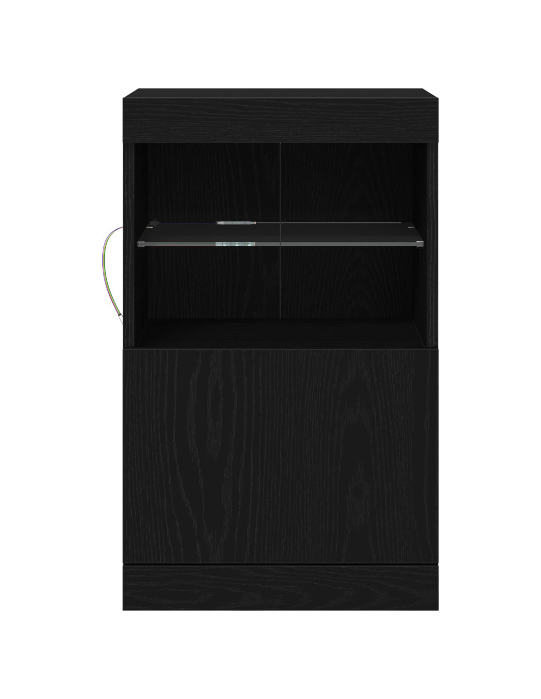 - Illuminazione a striscia LED Il mobile è dotato di strisce LED RGB che creano un'illuminazione dinamica, impreziosendo l'atmosfera e mettendo in risalto gli oggetti sui ripiani in vetro. Con un semplice pulsante, puoi cambiare l'atmosfera secondo il tuo umore.