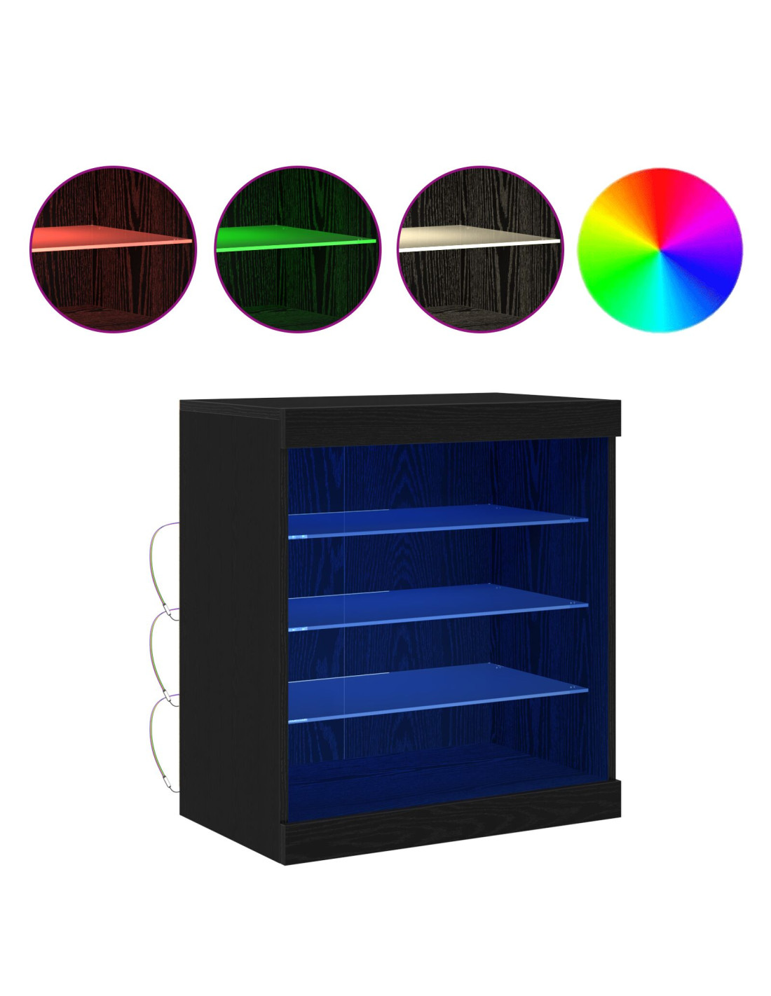 - Strisce LED RGB: Le strisce LED RGB integrate arricchiscono il sideboard con stile e personalità. Puoi scegliere tra diverse opzioni di illuminazione, da luci soft e rilassanti a colori vivaci per feste. Un pulsante ti permette di controllare tutto facilmente, un valore aggiunto per la praticità.