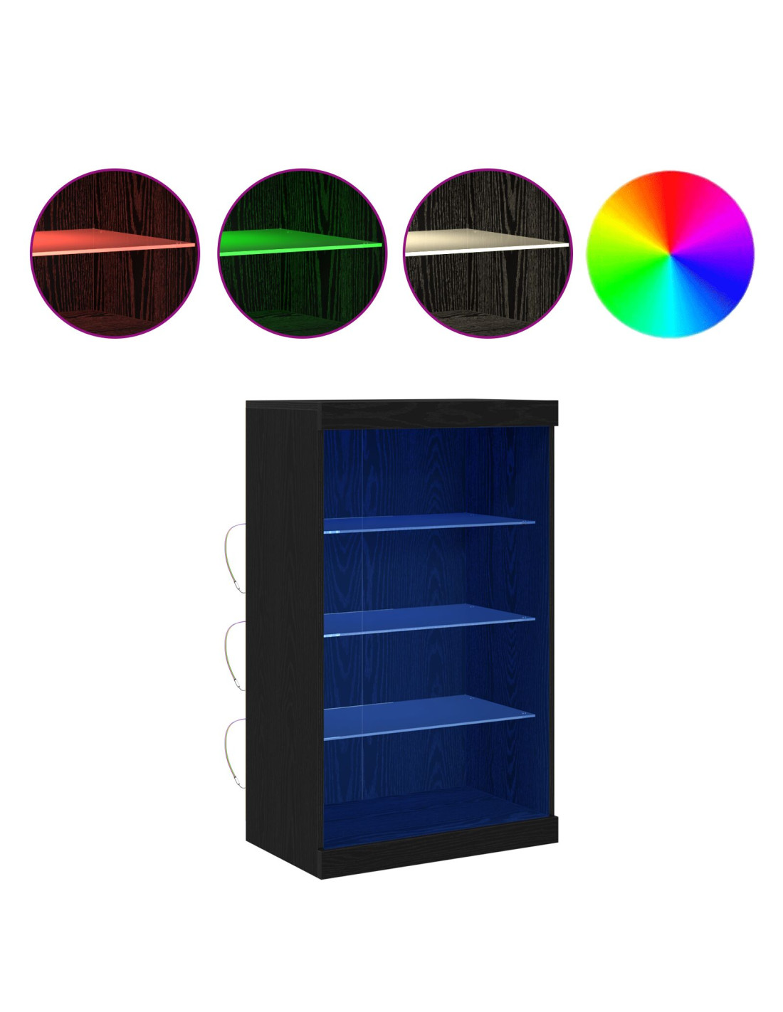 - Componenti Inclusi: Il sideboard ha vari ripiani in vetro che mostrano elegantemente gli oggetti, migliorando l’aspetto contemporaneo. Le luci LED multicolori integrate portano vita in qualsiasi ambiente. Un semplice interruttore a pulsante controlla l'illuminazione comodamente, per un uso senza problemi.