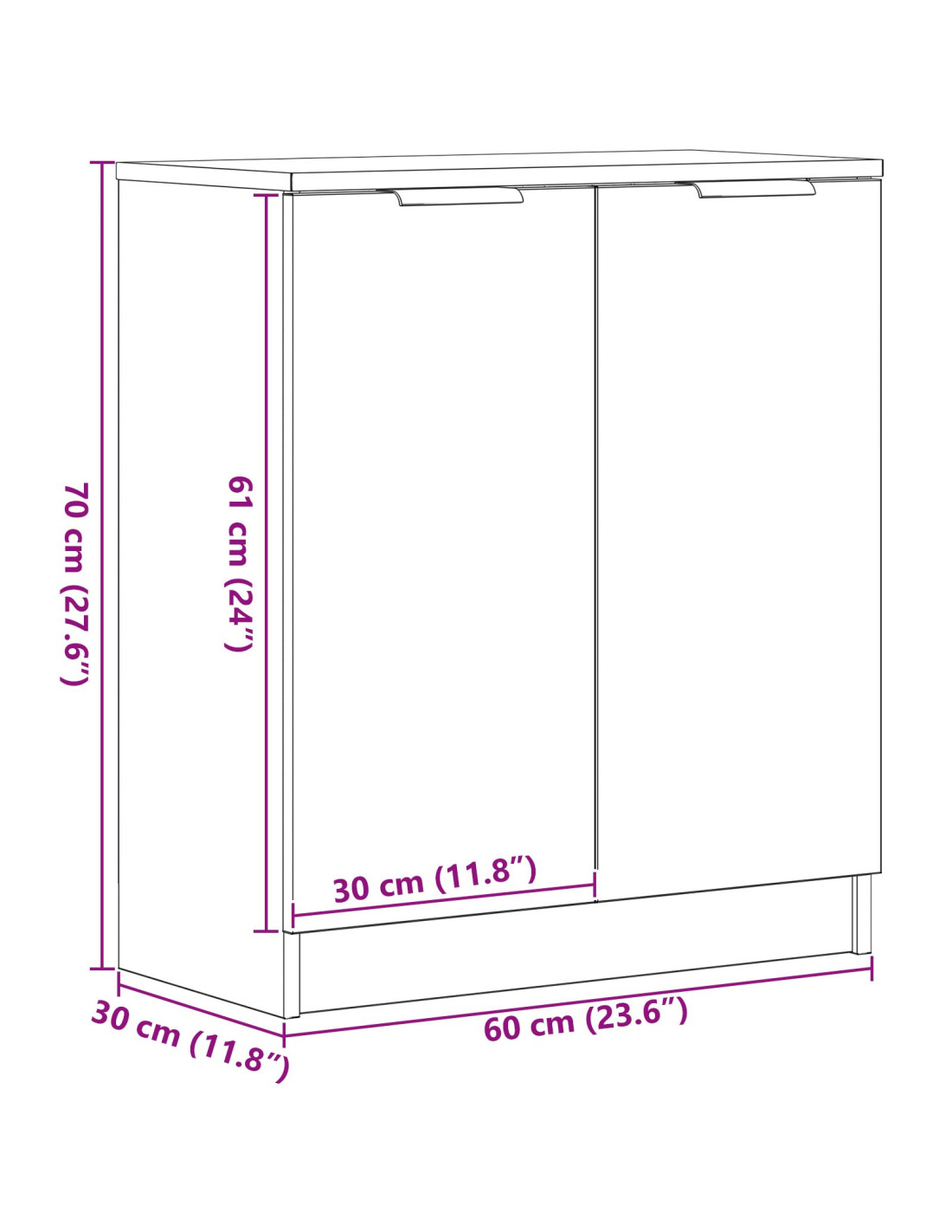 - Dimensioni complessive: 60 x 30 x 70 cm (L x P x A)