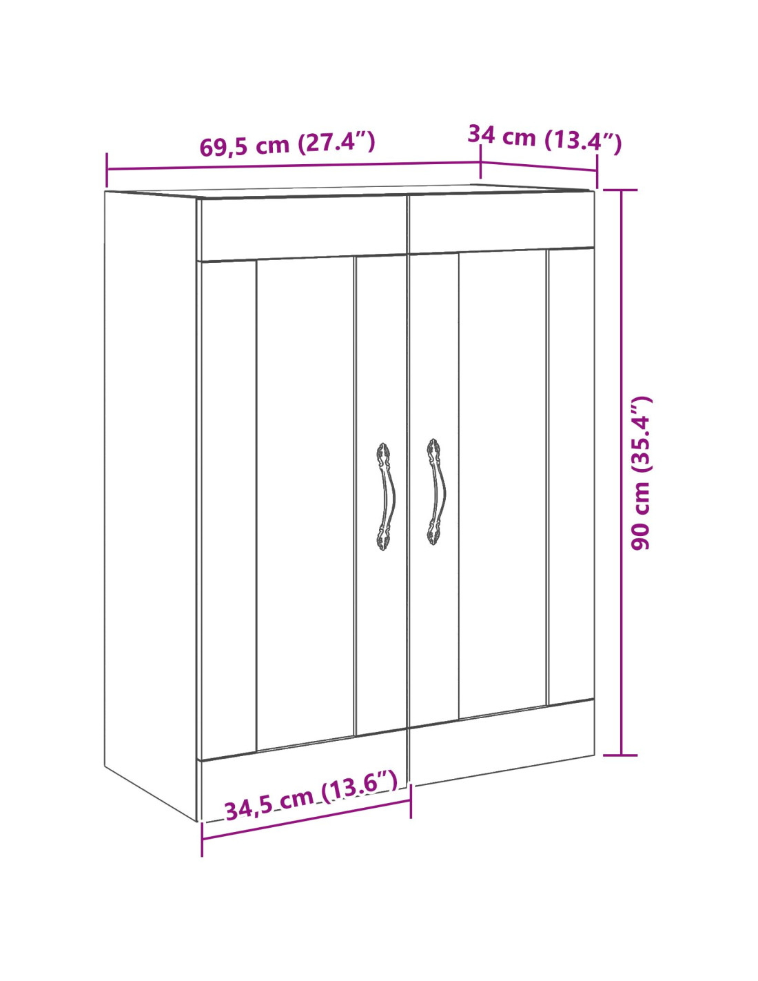 - Dimensioni complessive: 69,5 x 34 x 90 cm (L x P x A)