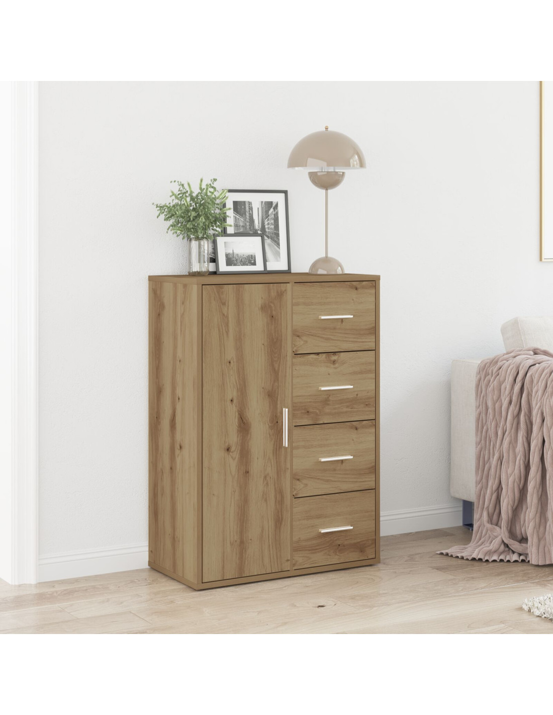- Opzioni di stoccaggio pratiche: Con ripiani, sportelli e cassetti, la credenza si adatta a varie esigenze di stoccaggio. Ogni parte è pensata per un facile accesso e buona organizzazione.