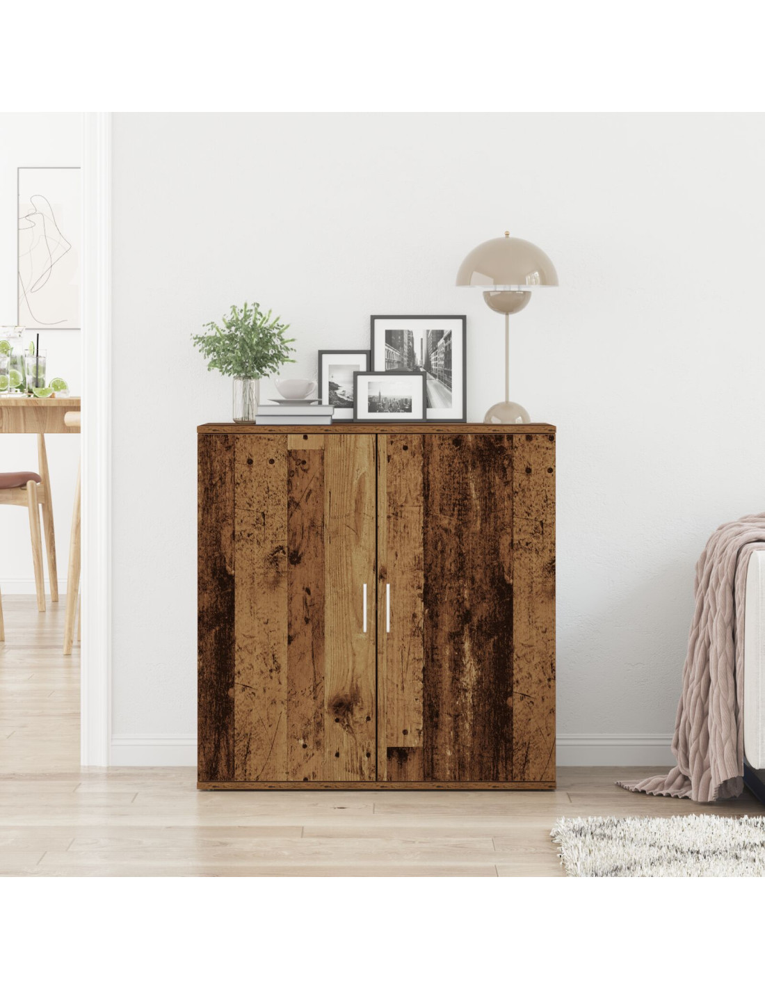Questa credenza in legno ingegnerizzato dallo stile rustico è una soluzione pratica che ravviva qualsiasi sala da pranzo o soggiorno. Combina funzionalità e stile con un interno spazioso nascosto dietro porte ben curate. La sua forma rettangolare compatta la rende perfetta anche per spazi ridotti, ed è una scelta ideale per le case in città. Con il suo aspetto caldo e naturale, porta carattere e comfort in qualsiasi ambiente.