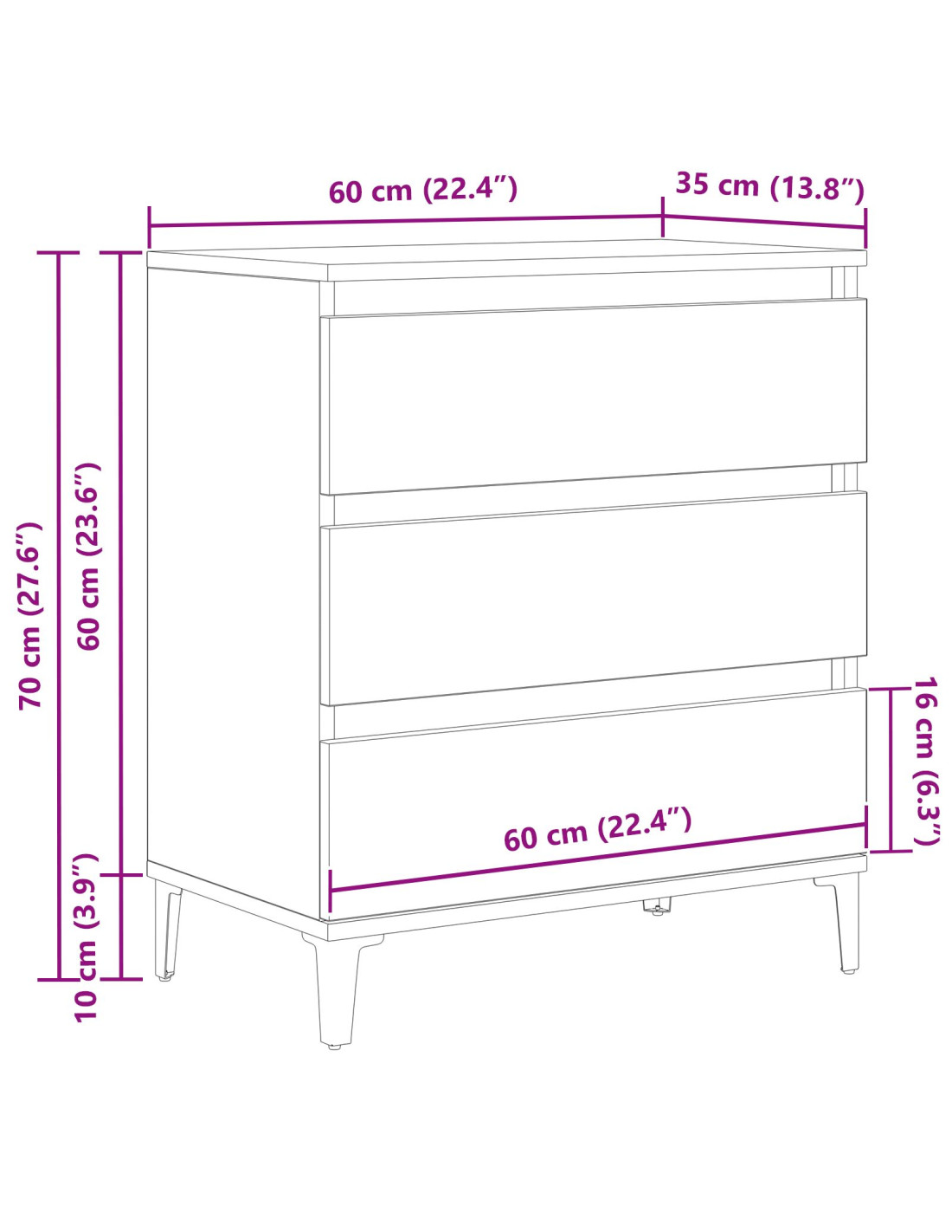 - Dimensioni complessive: 60 x 35 x 70 cm (L x P x A)