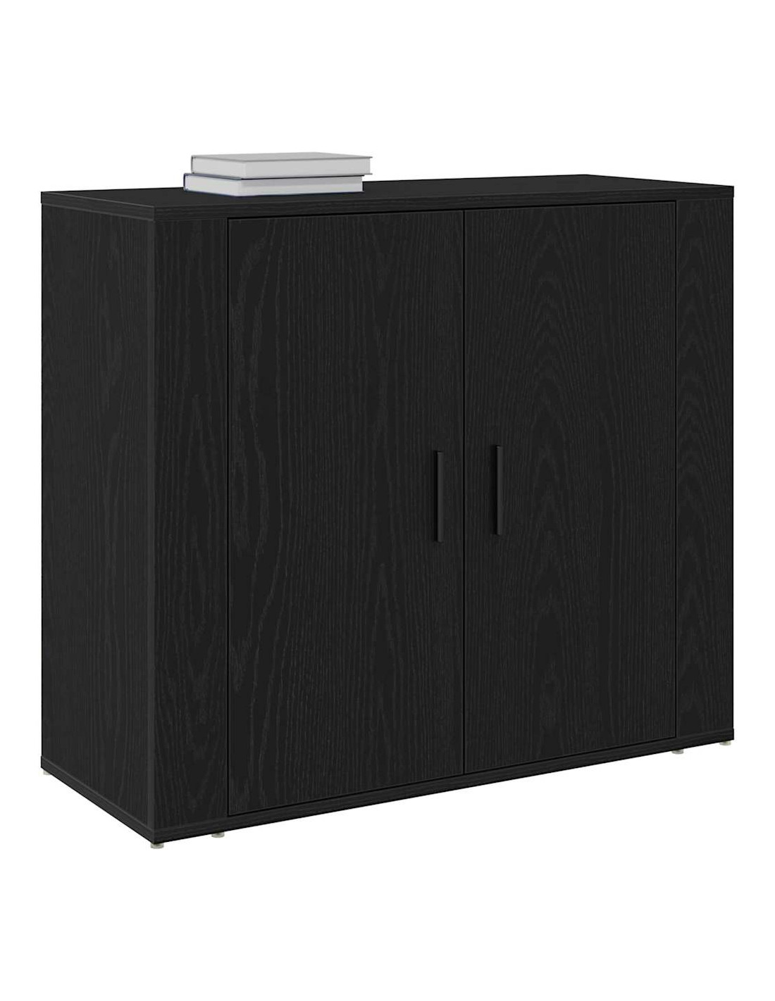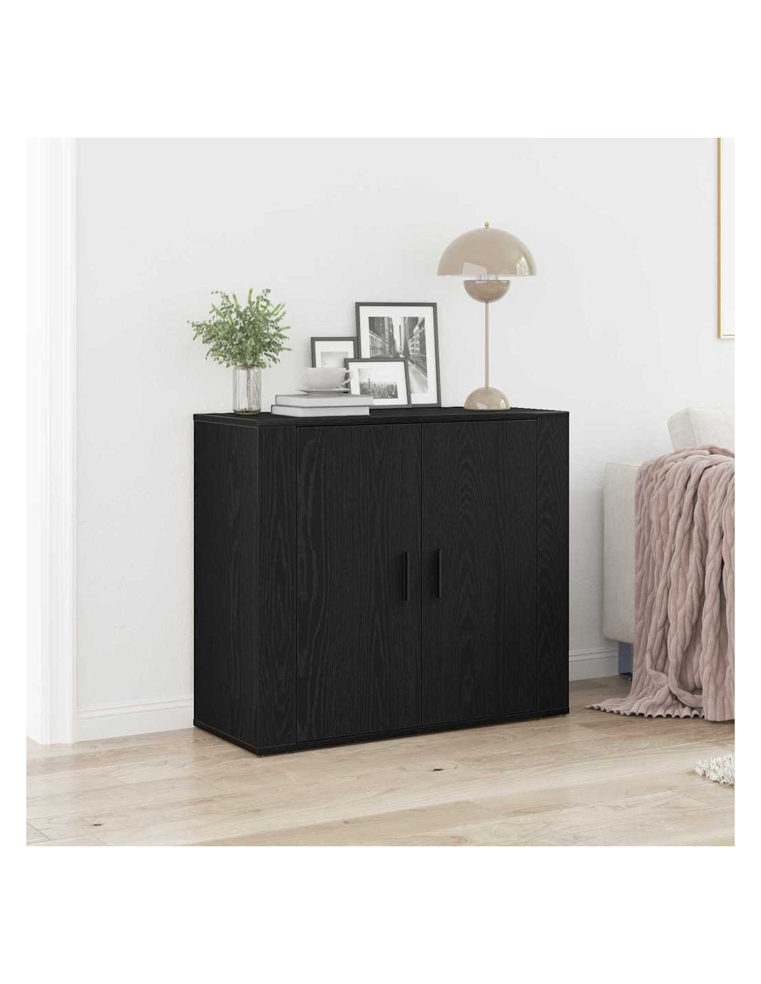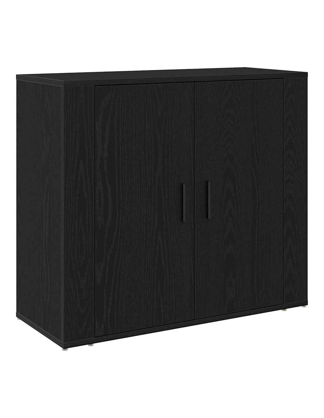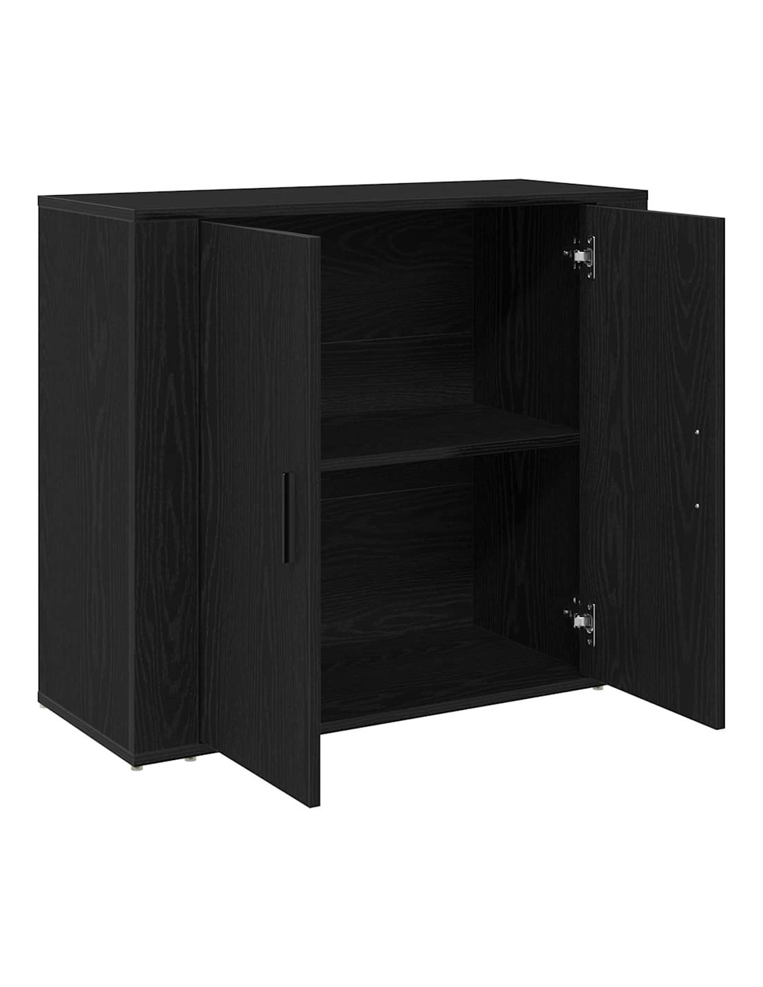 - Componenti Inclusi: Ha porte a cerniera funzionali fatte dello stesso legno ingegnerizzato, che permettono un accesso facile agli oggetti riposti. Le maniglie in acciaio nero aggiungono un tocco trendy, allineandosi perfettamente con il design d'interni attuale.
