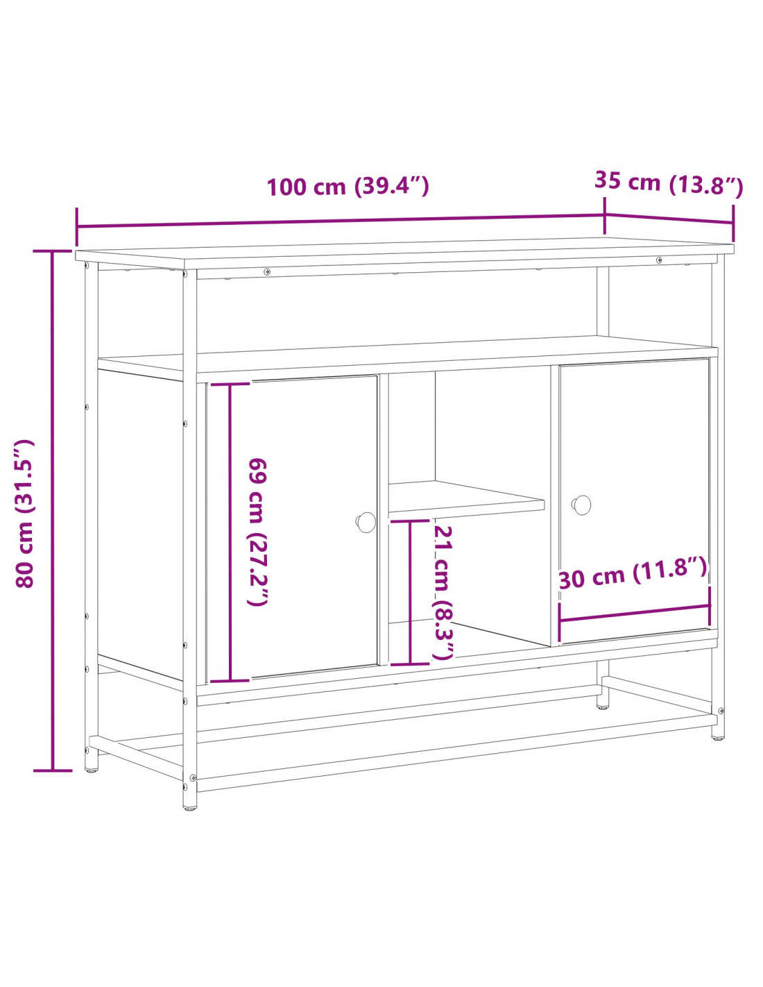 - Componenti Inclusi: La credenza è dotata di ripiani e porte a cerniera, realizzati per fondere funzionalità e stile. I ripiani robusti offrono uno spazio comodo per riporre piatti, bicchieri e altro, rendendo l'accesso semplice.