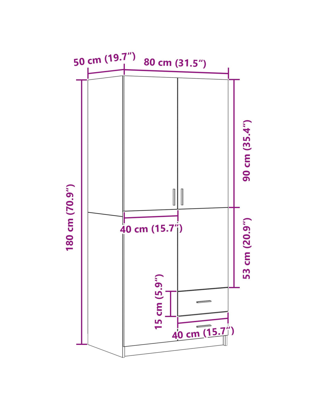 - Dimensioni complessive: 80 x 50 x 180 cm (L x P x A)