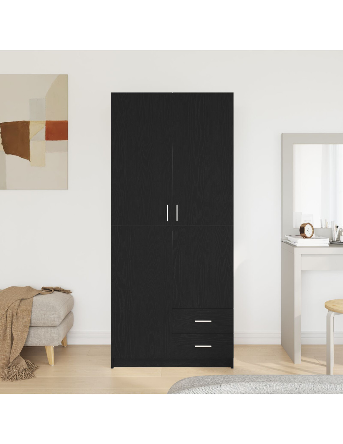 - Struttura in legno ingegnerizzato: Ben realizzato in legno di alta qualità, questo armadio ha una costruzione robusta che comunica affidabilità e un look moderno. Il materiale resiste ai segni del tempo, mantenendo comunque un aspetto chic.