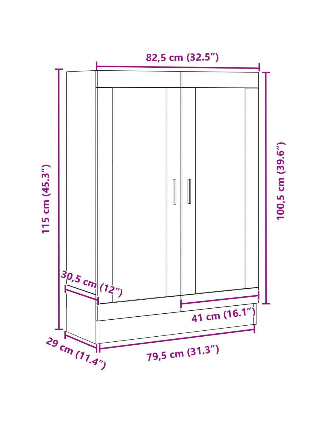 - Dimensioni complessive: 82,5 x 30,5 x 115 cm (L x P x A)