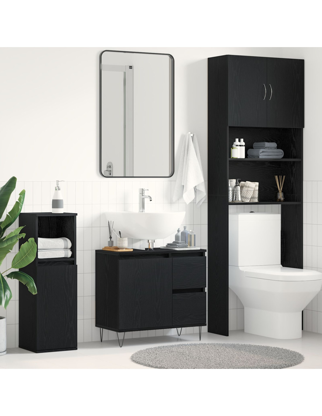 - Materiali Durevoli: Fatto di legno ingegnerizzato, è robusto e resiste bene all'umidità del bagno. Con una finitura liscia, è sia bello che funzionale.