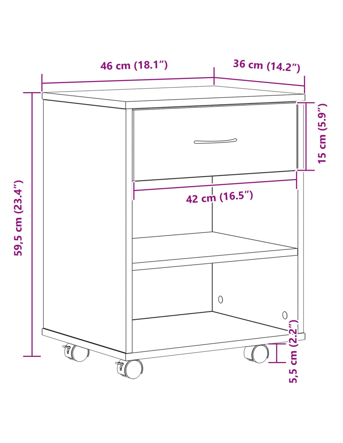 - Dimensioni complessive: 46 x 36 x 59 cm (L x P x A)